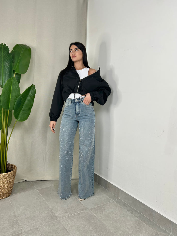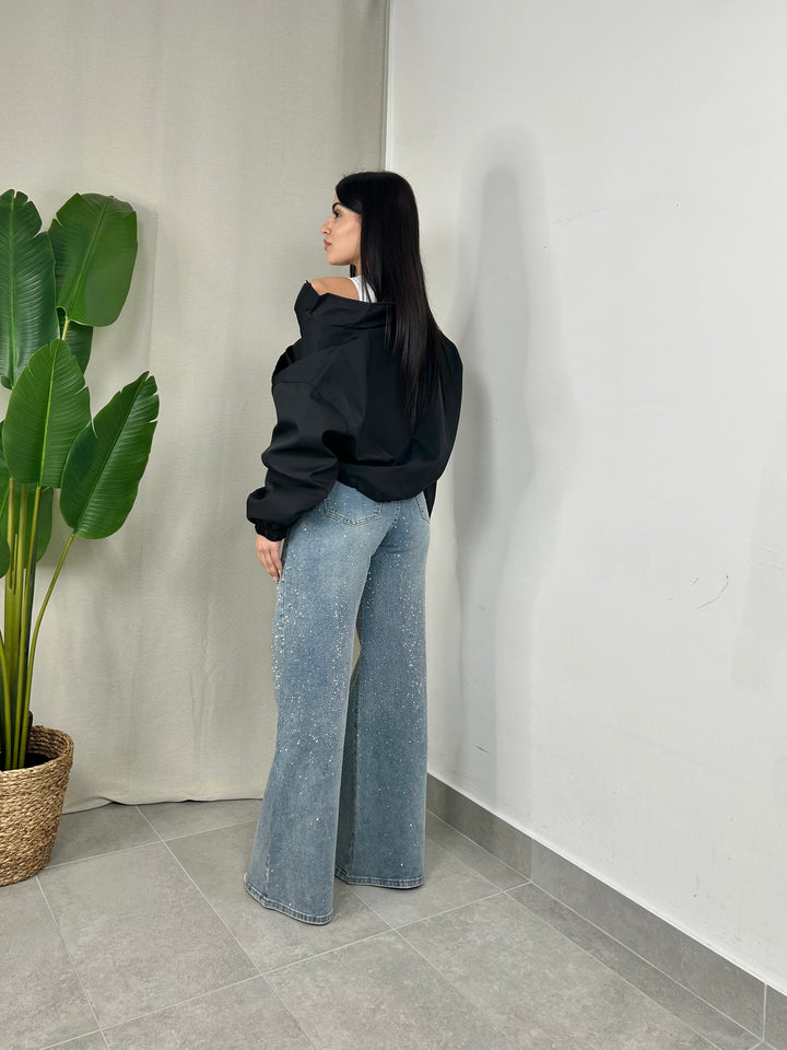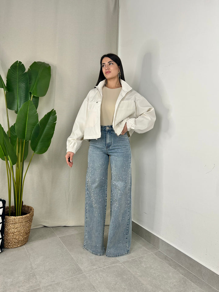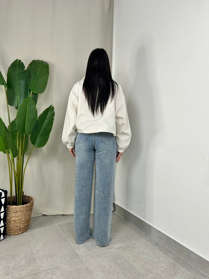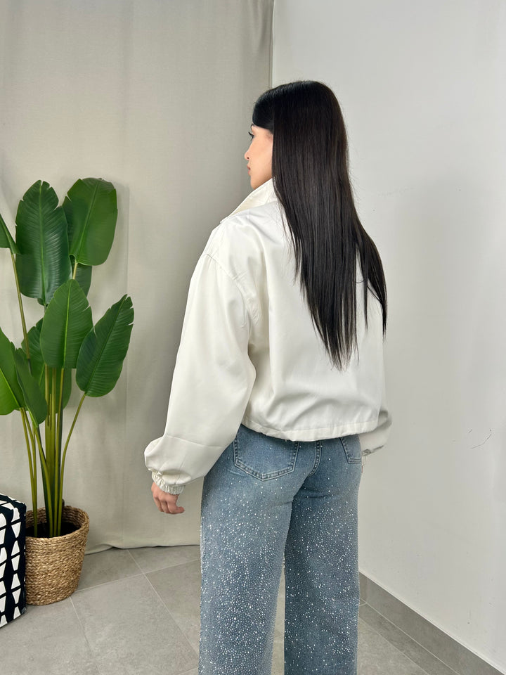 -Giubbotto mezzo collo in tessuto tecnico con doppio taschino e coulisse regolabile in vita;