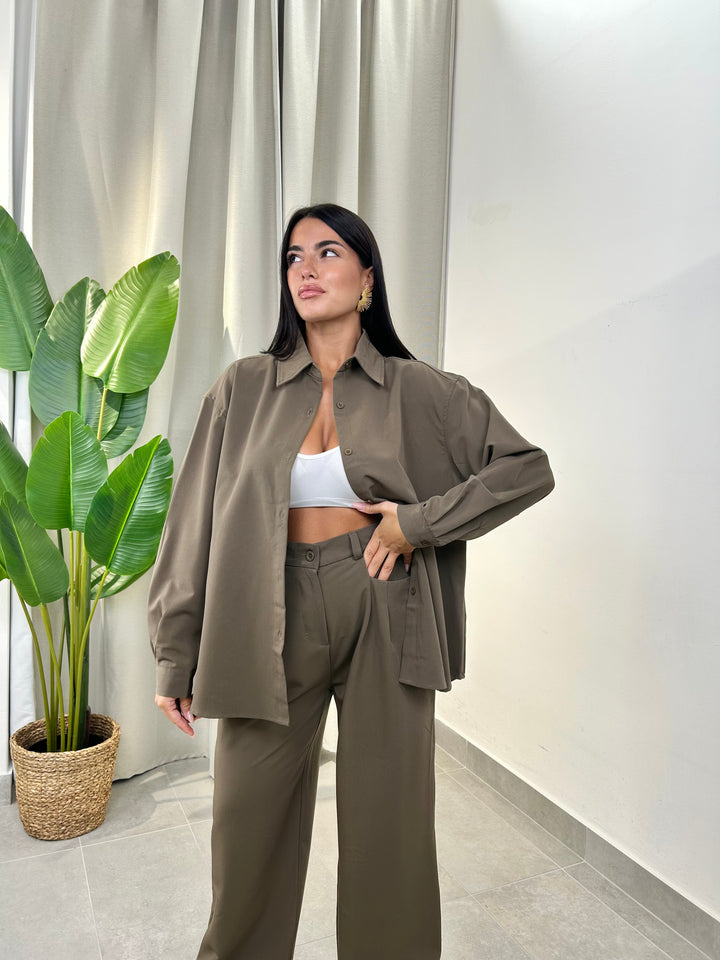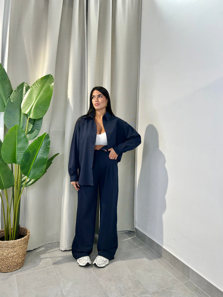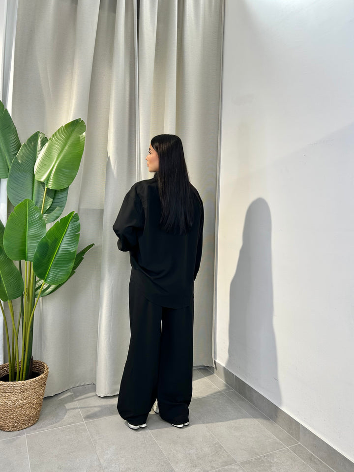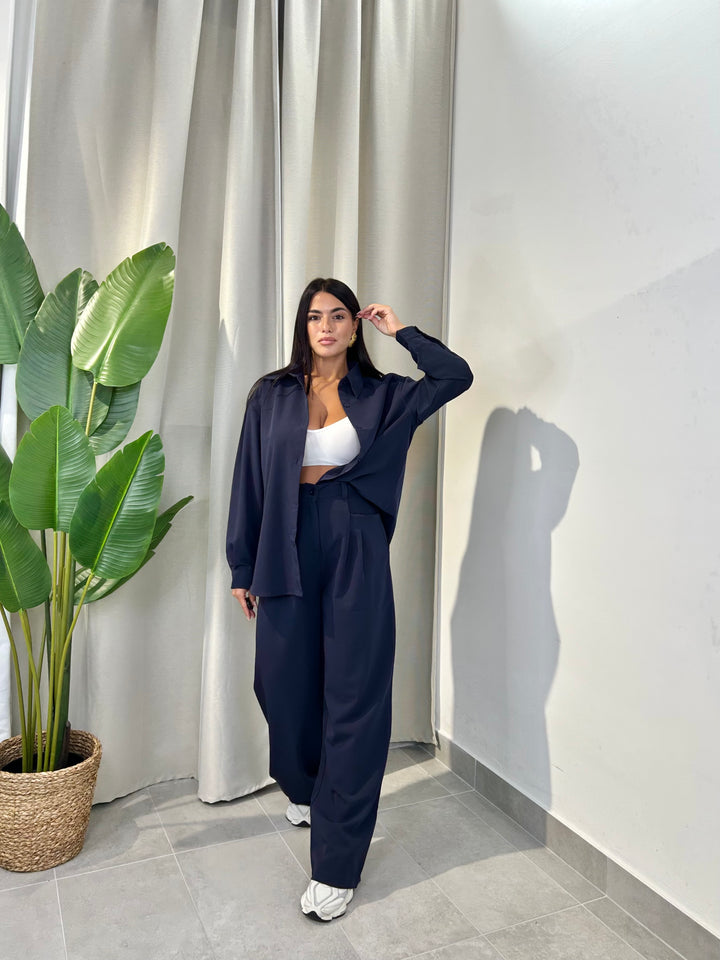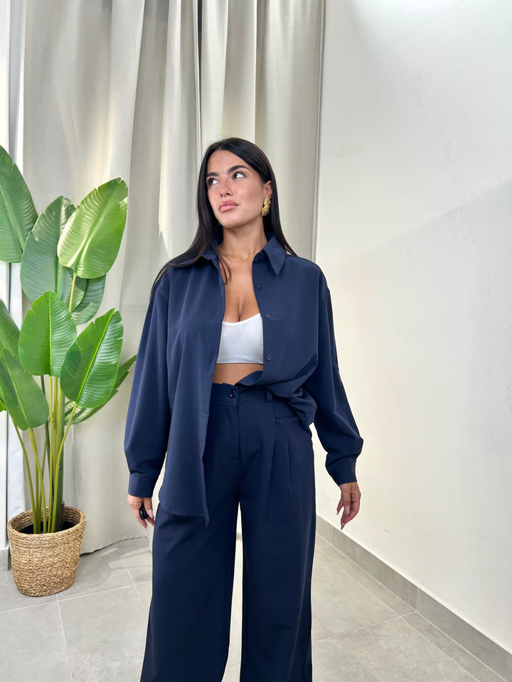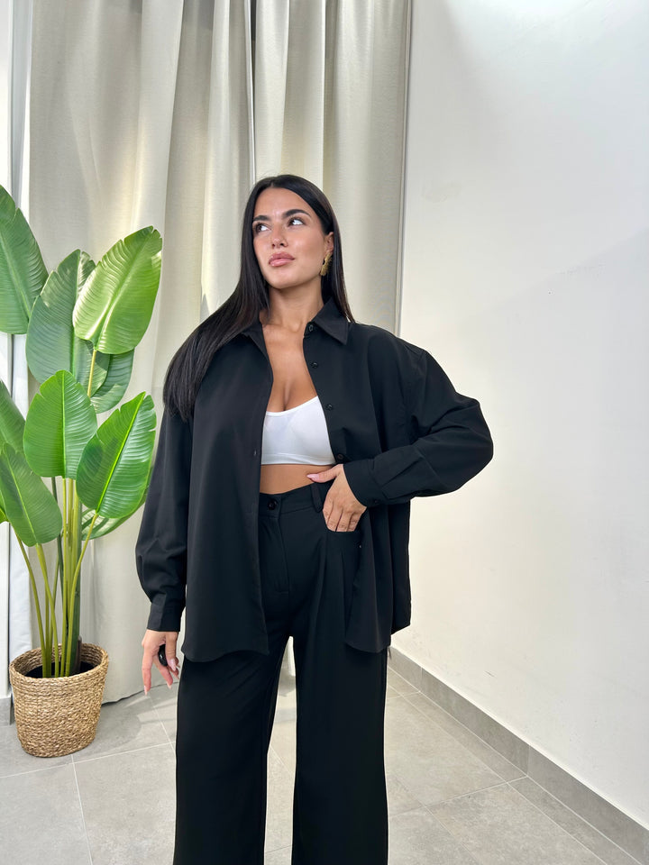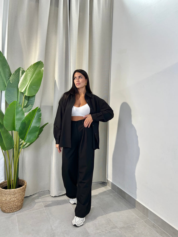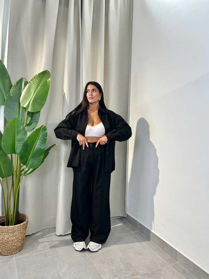 -Coordinato composto da Camicione oversize taglia unica+Pantalone palazzo a taglia;