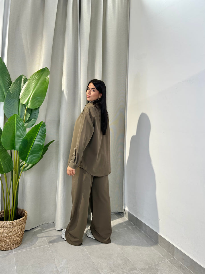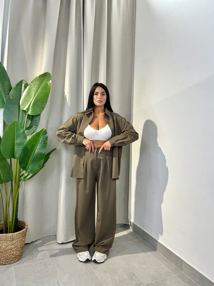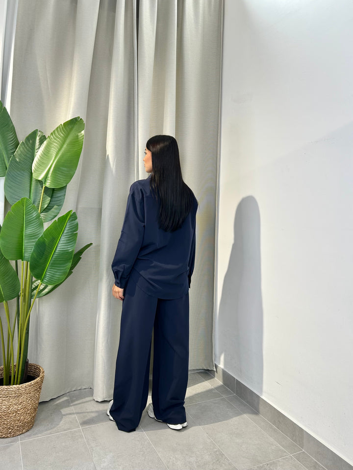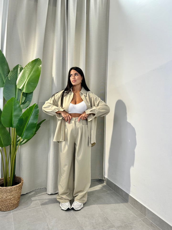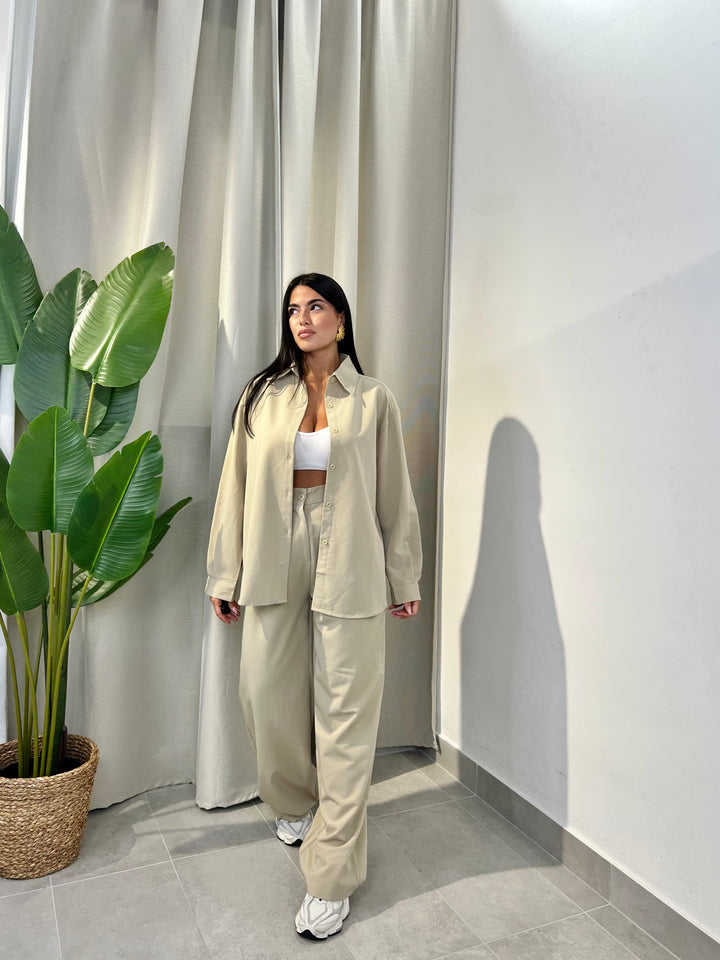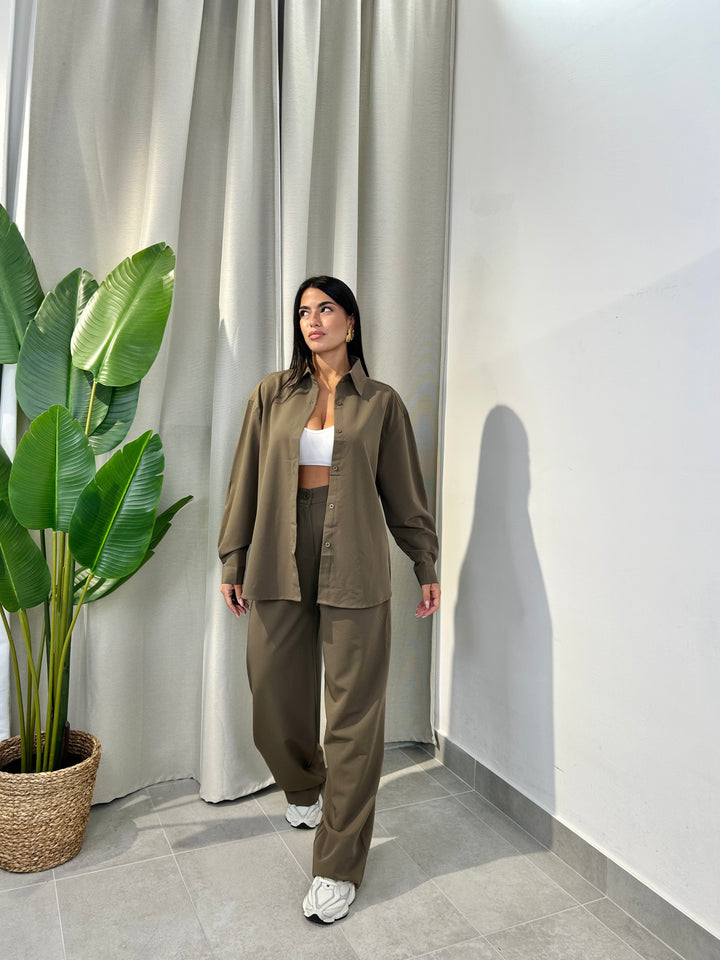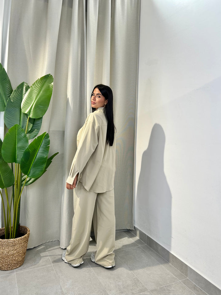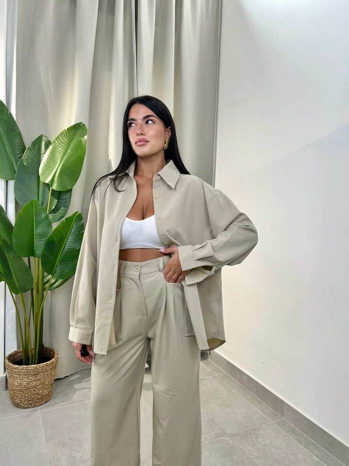 -Coordinato composto da Camicione oversize taglia unica+Pantalone palazzo a taglia;