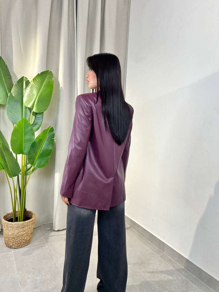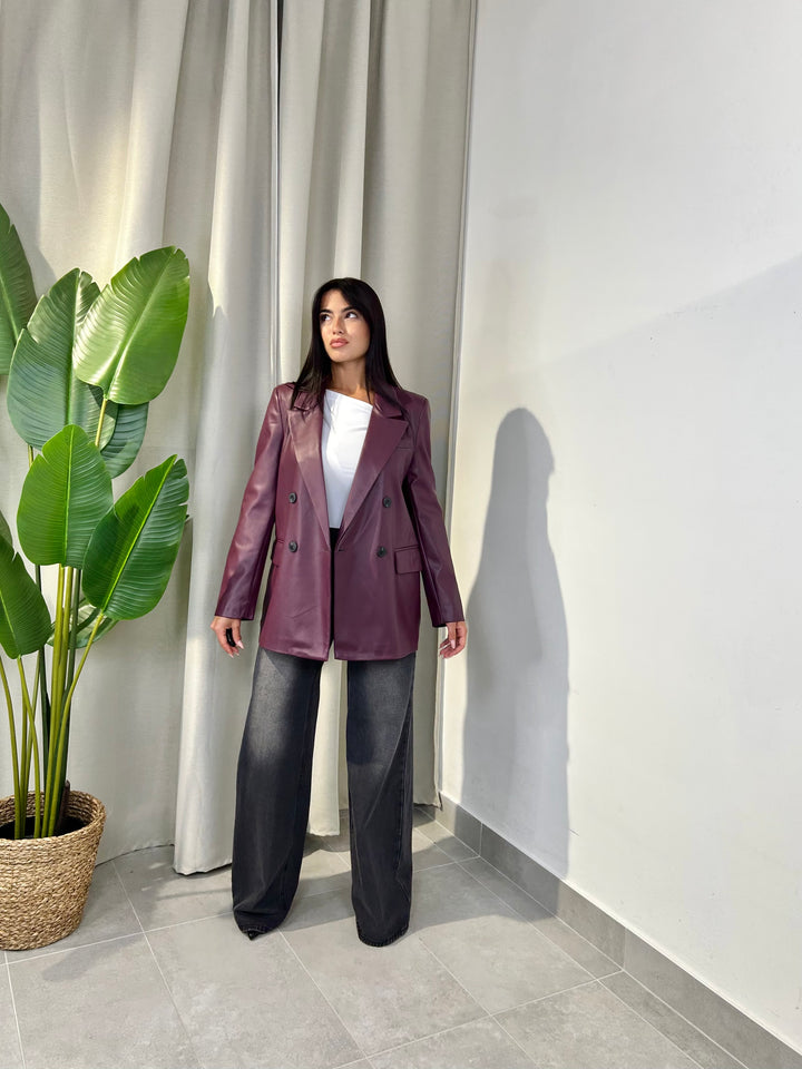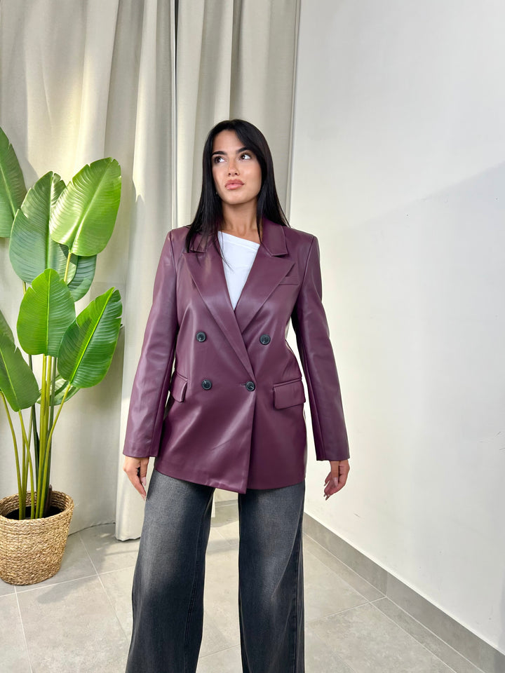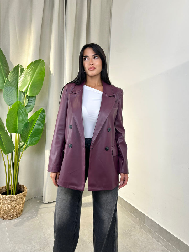 -Giacca in ecopelle del Brand “Only”; Abbottonatura laterale e vestibilità oversize;