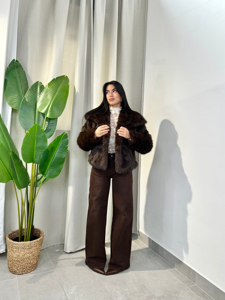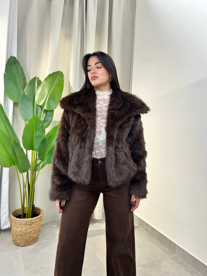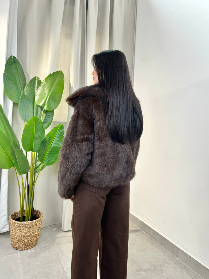 -Ecopelliccia marrone foderata all’interno del brand “Only”;