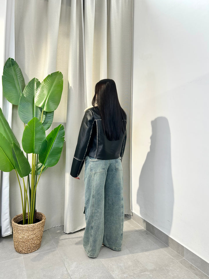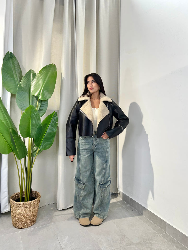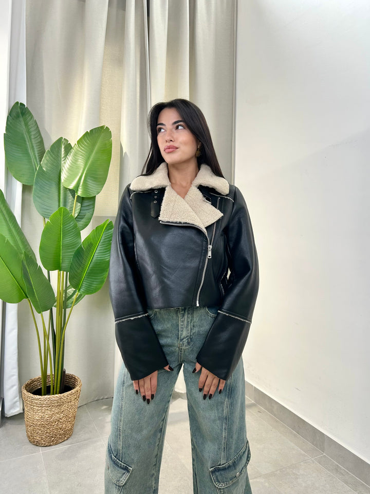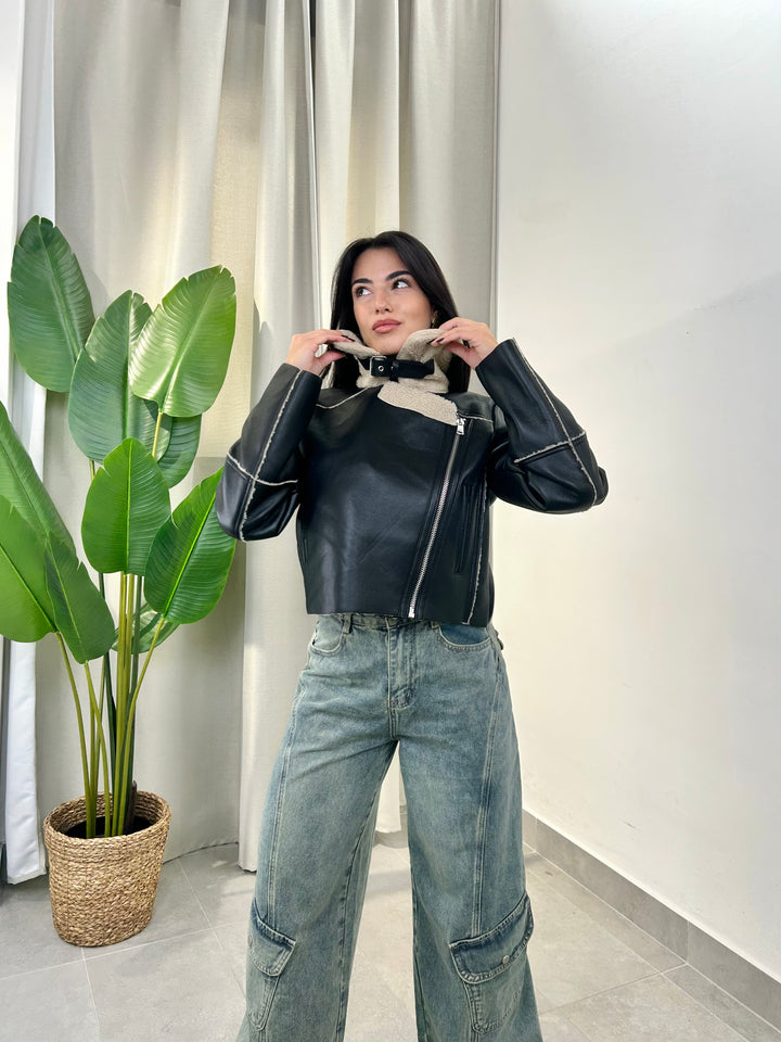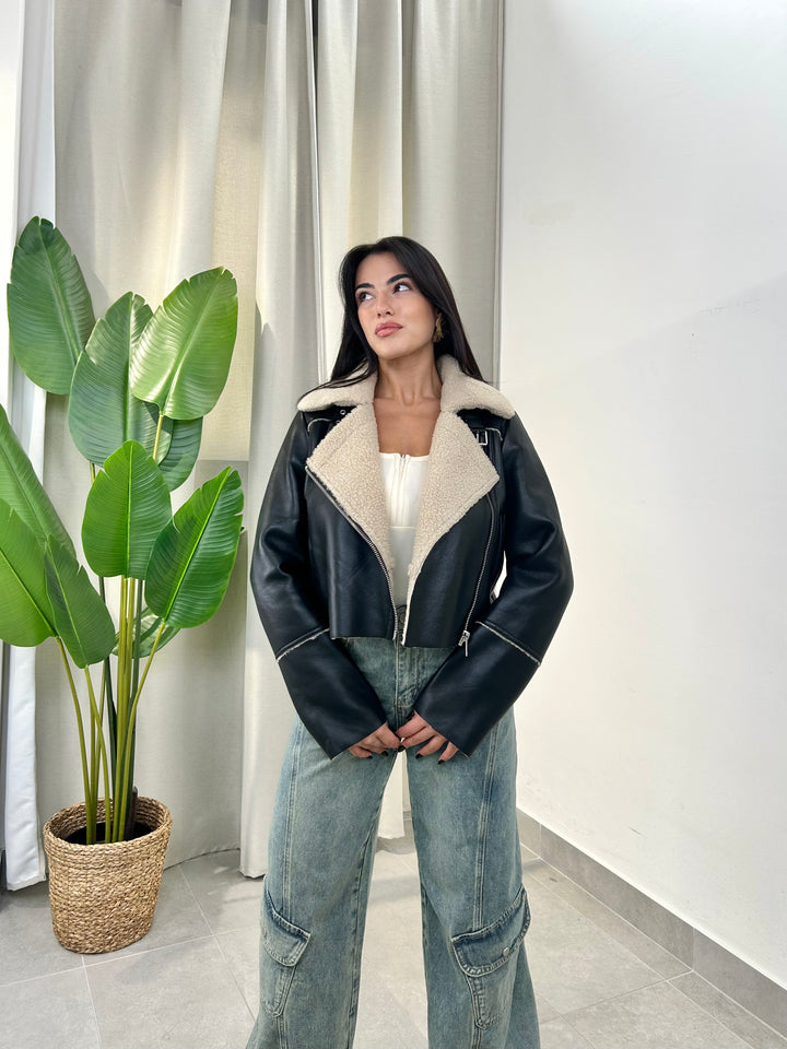 -Montone in ecopelle del brand “Only” foderato all’interno con eco pelliccia beige;