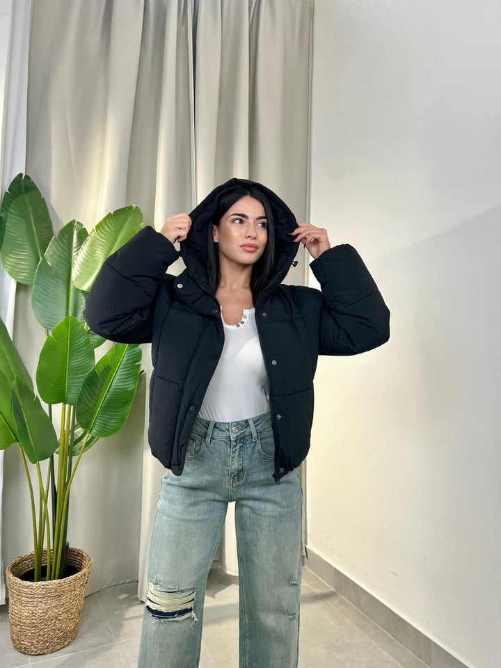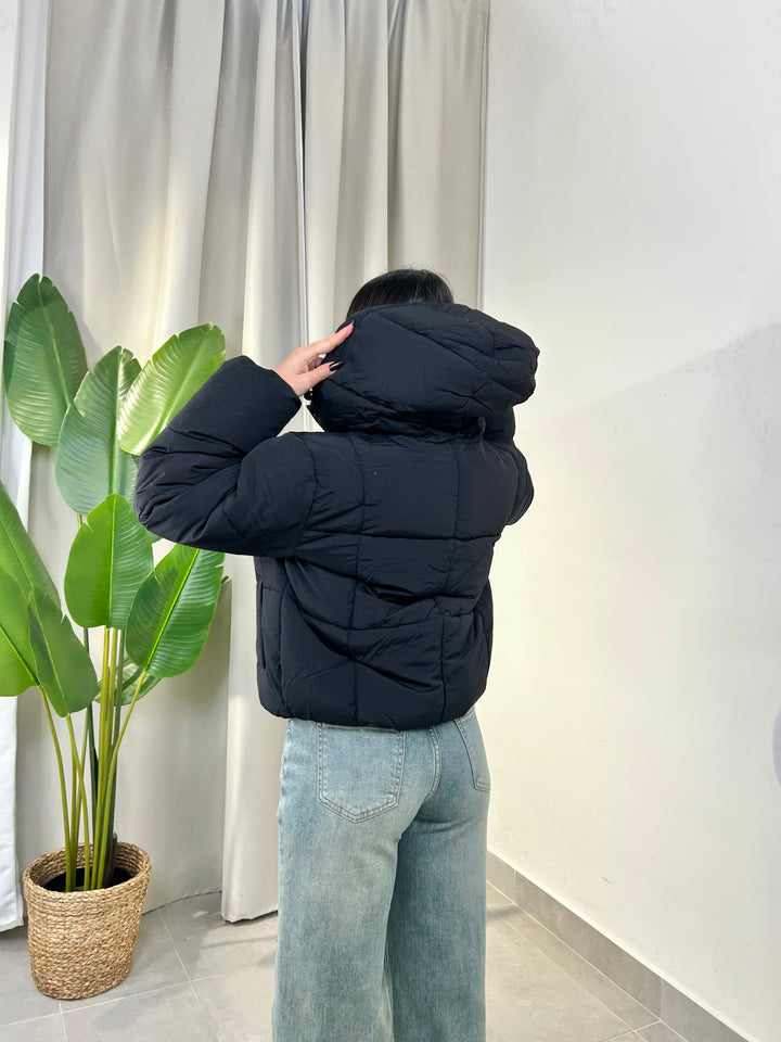 -Bomber in tessuto tecnico con cappuccio;Chiusura con zip e ciappe;