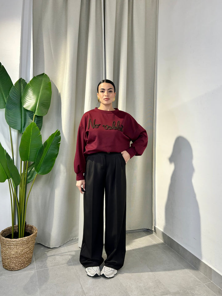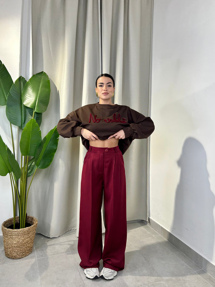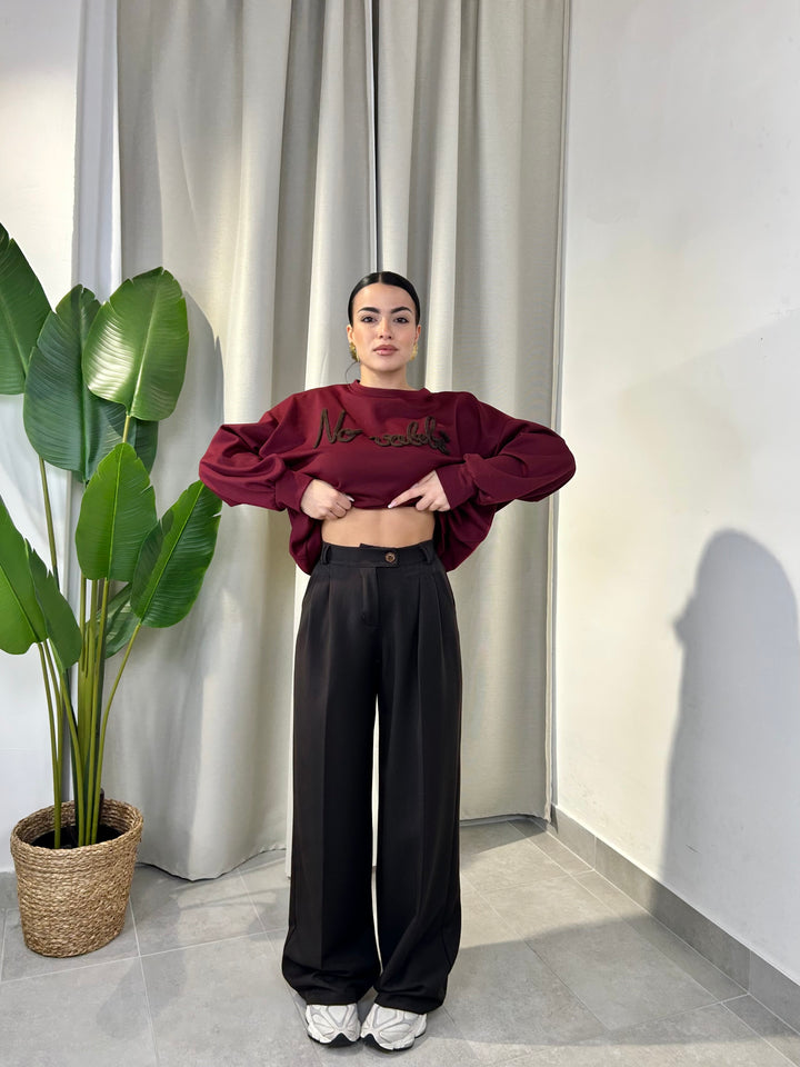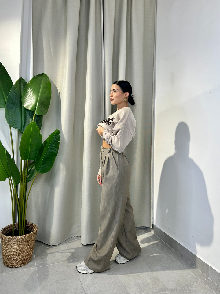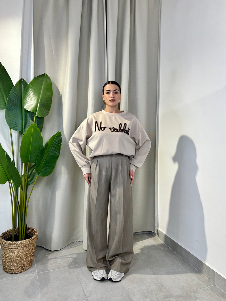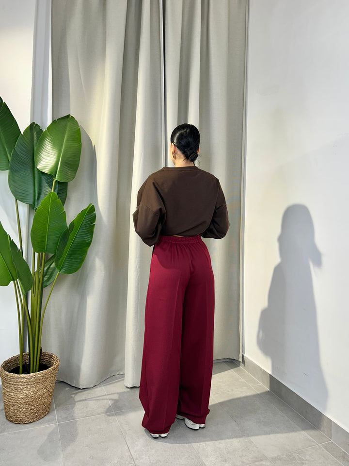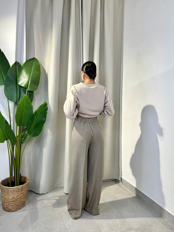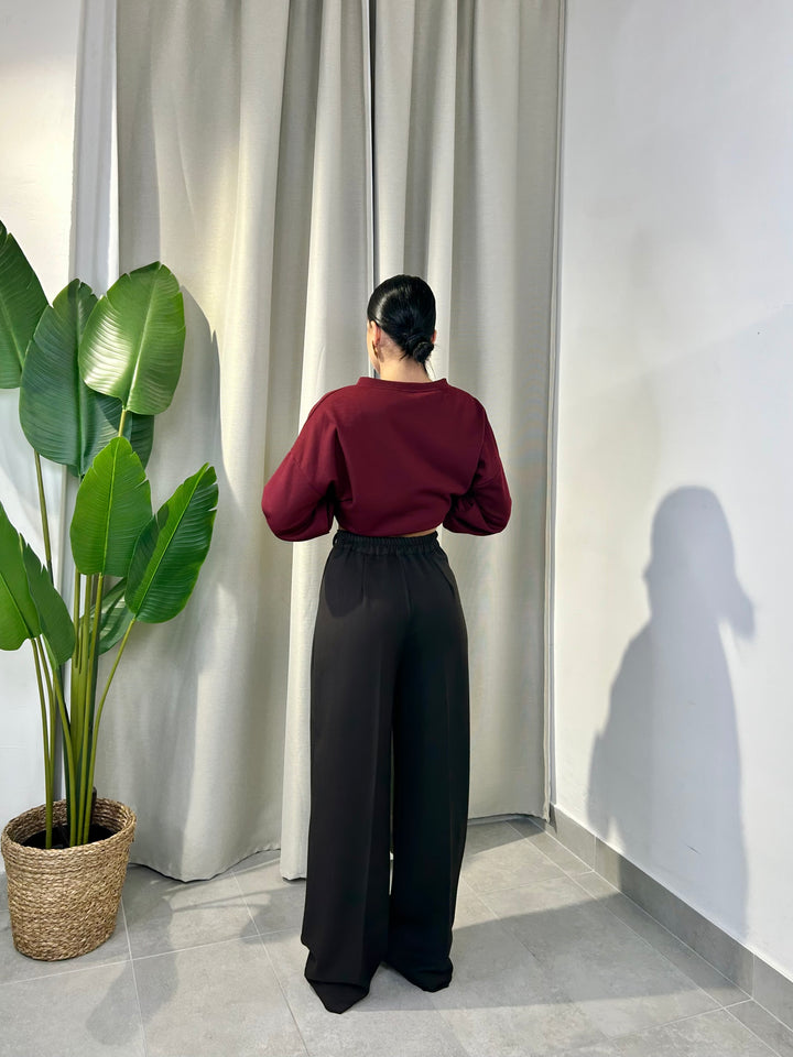 -Pantalone palazzo con abbottonatura laterale ed elastico sul retro;