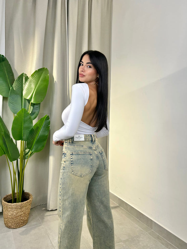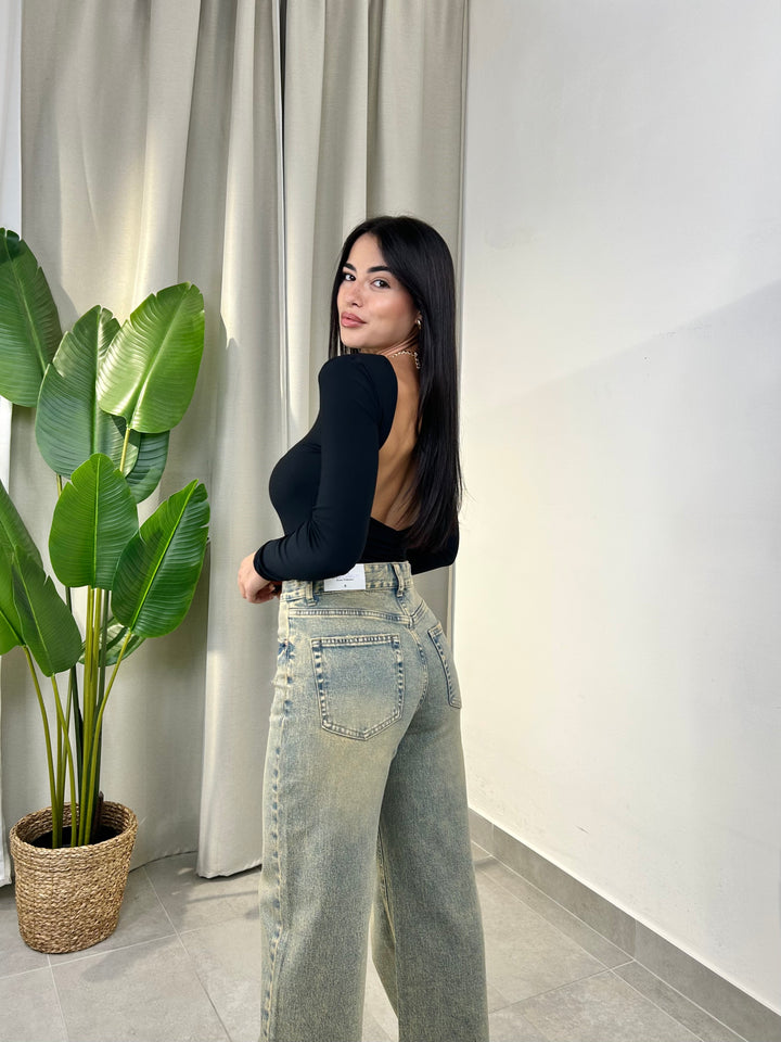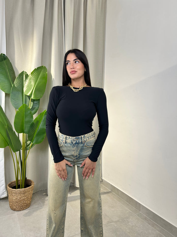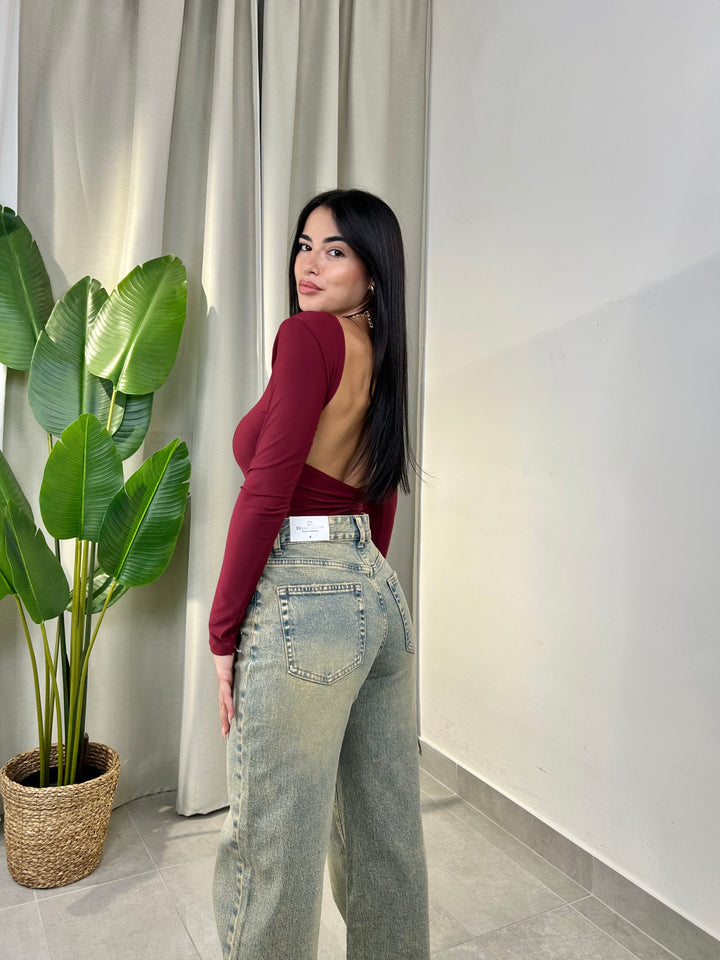 -Body in lycra girocollo con schiena scoperta e drappeggio sul retro;