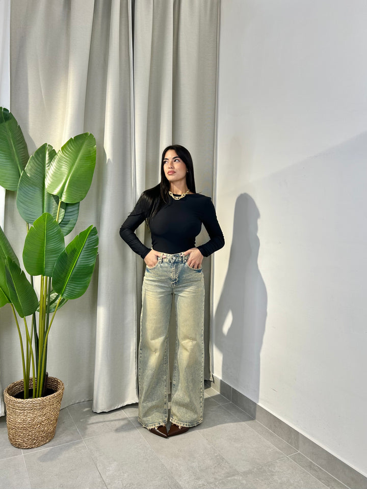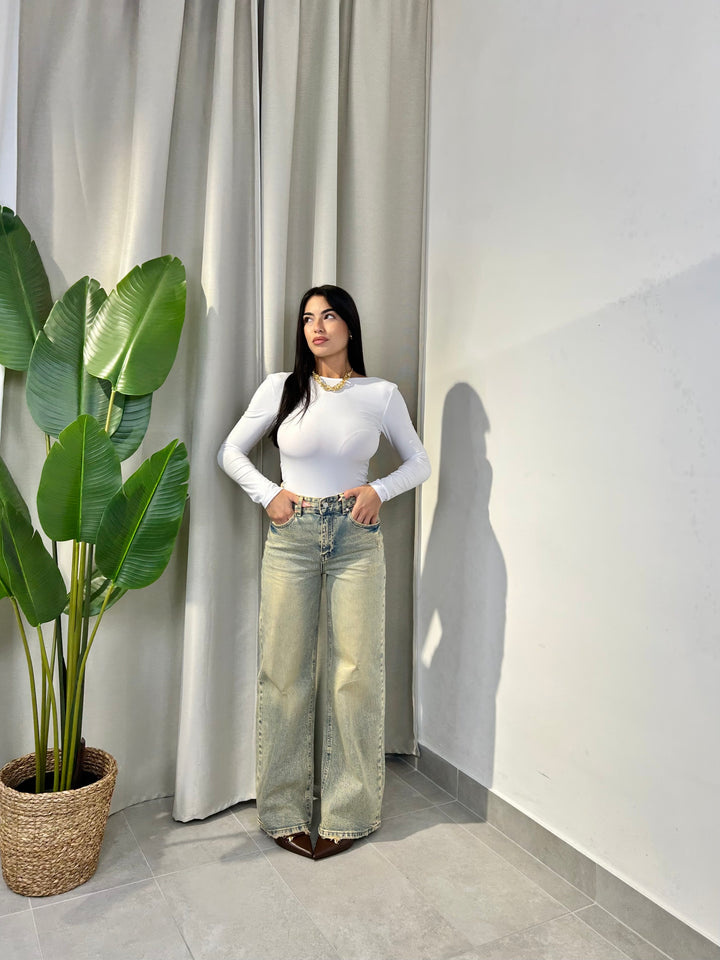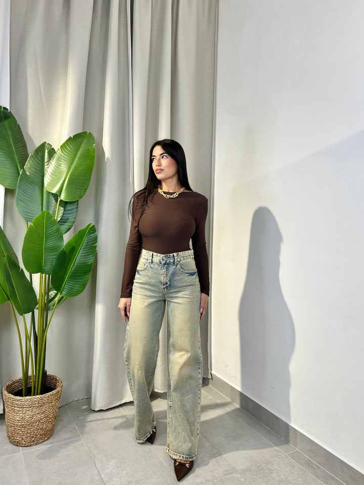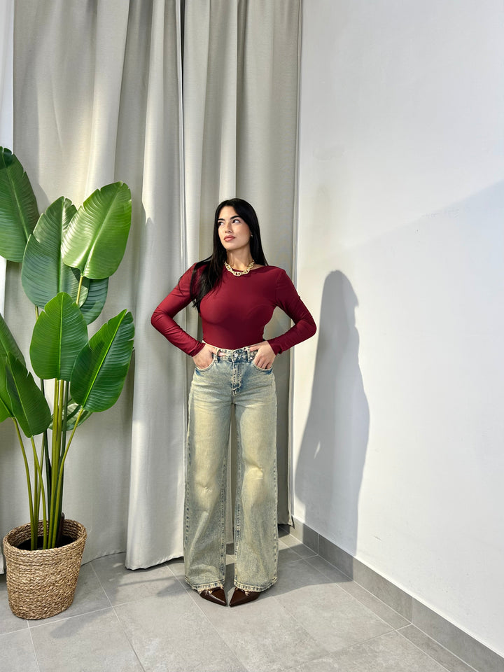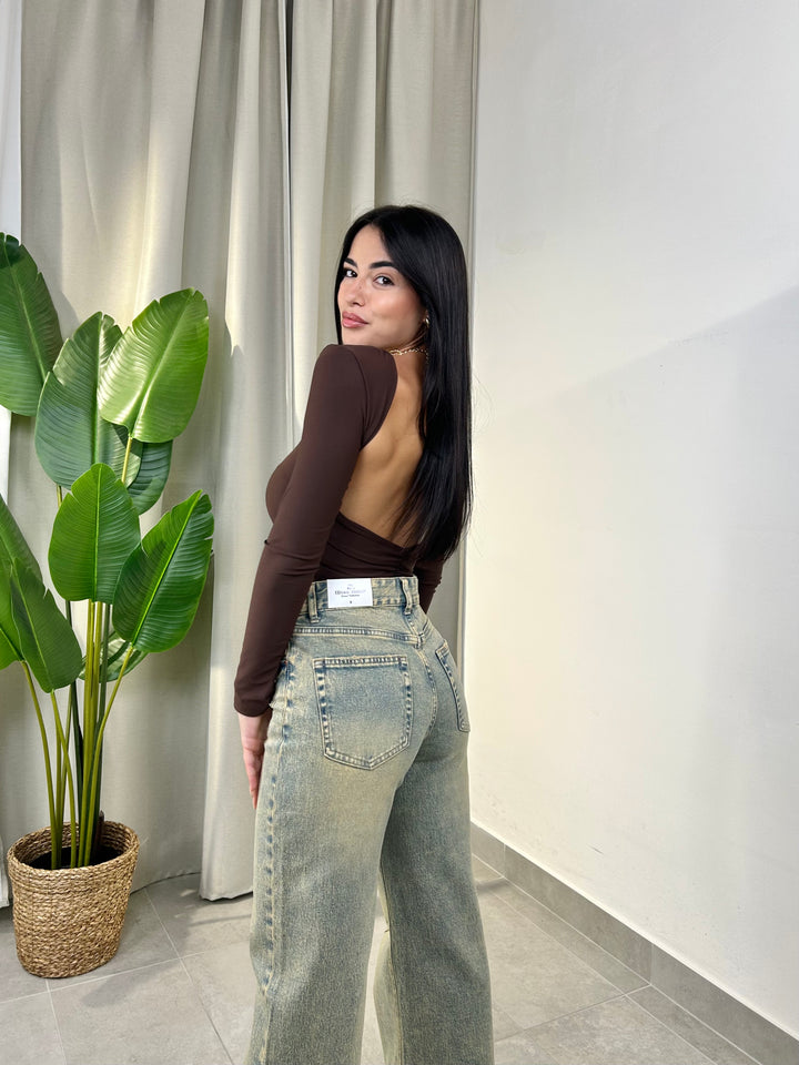 -Body in lycra girocollo con schiena scoperta e drappeggio sul retro;