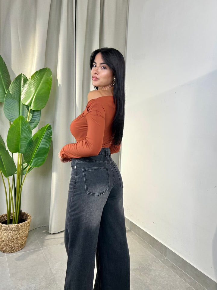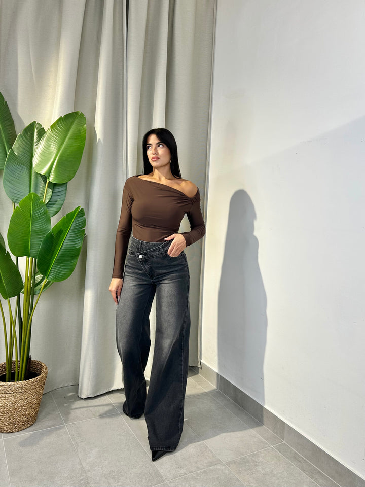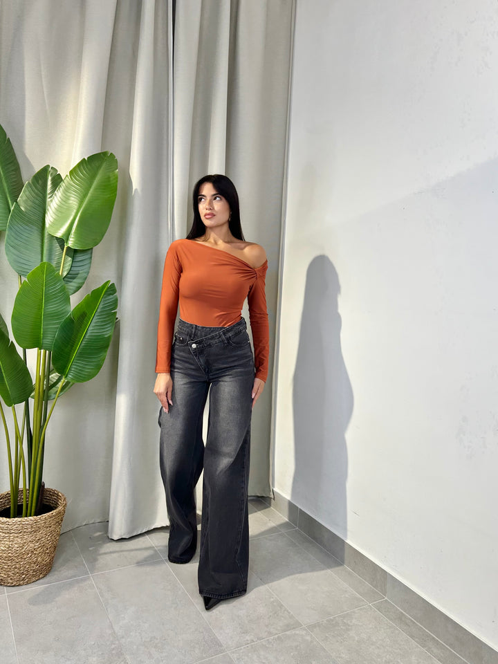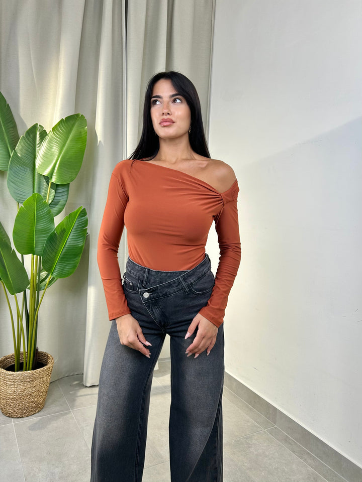 -Body in lycra con taglio asimmetrico e nodo laterale;