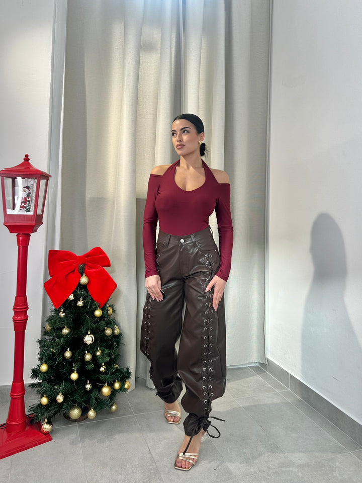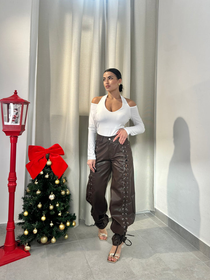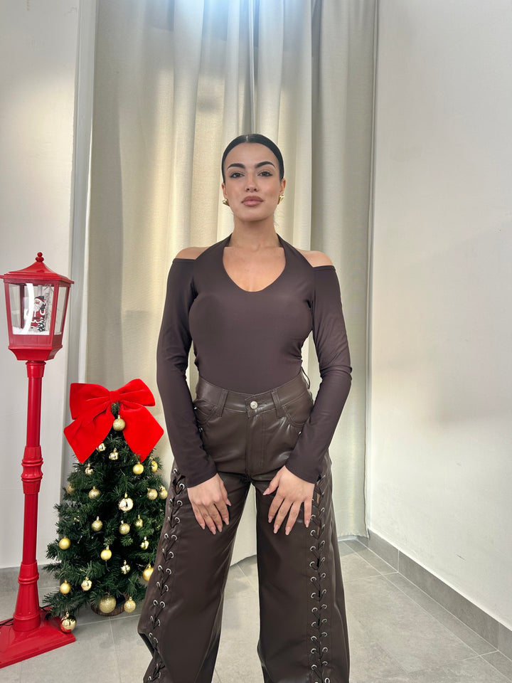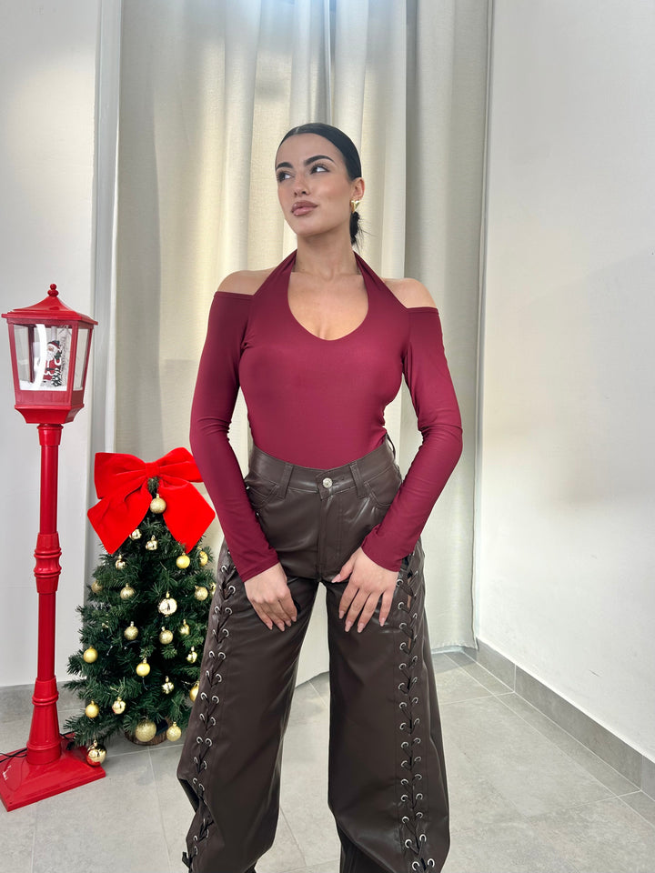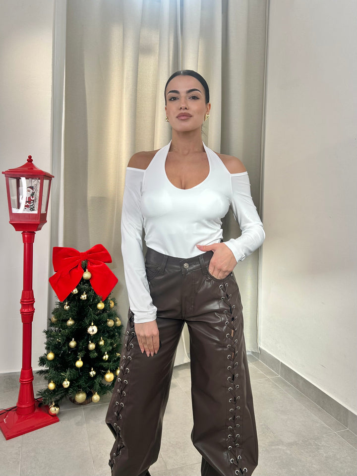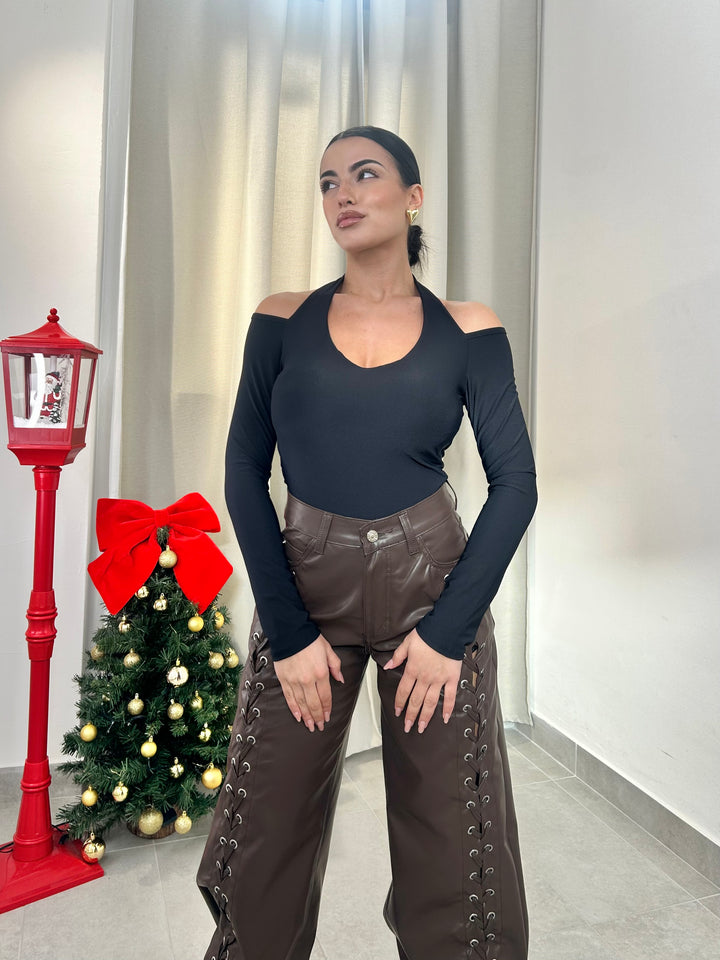 -Body in lycra scollo a V con coppe preformate;