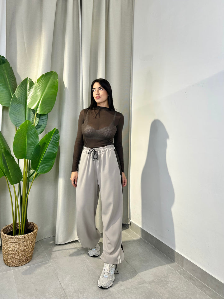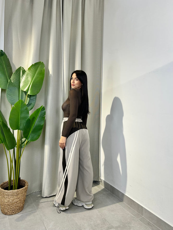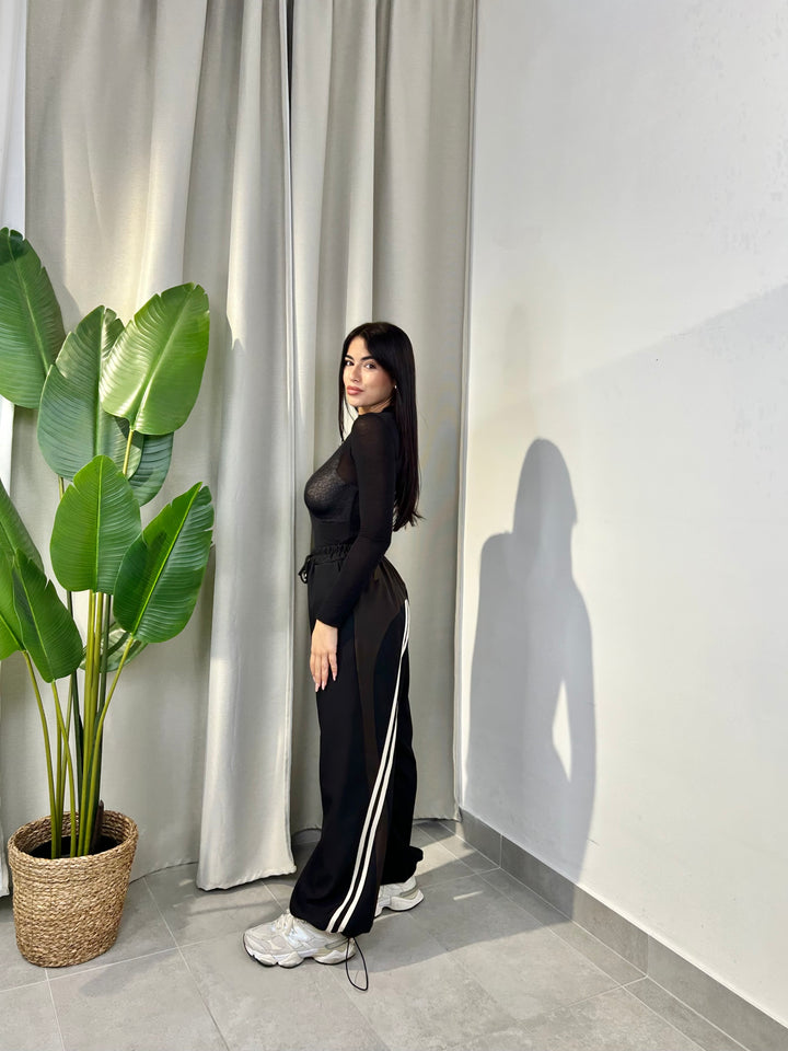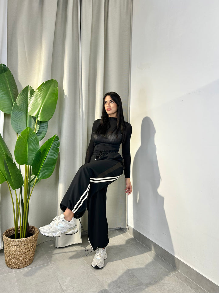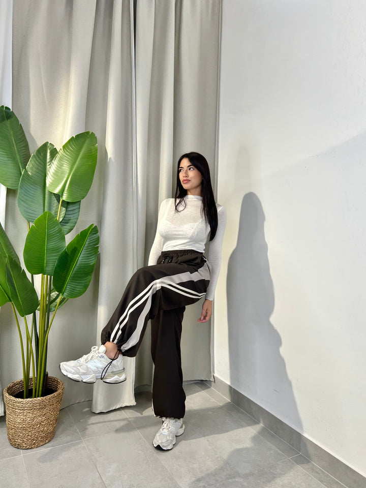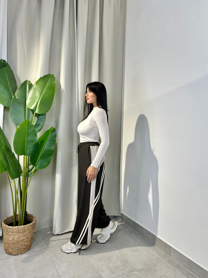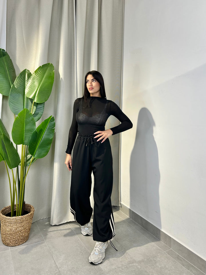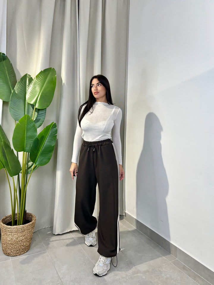 -Pantalone modello Wide Ballon con coulisse regolabile sul fondo;Elastico in vita regolabile;Bande laterali sul retro;