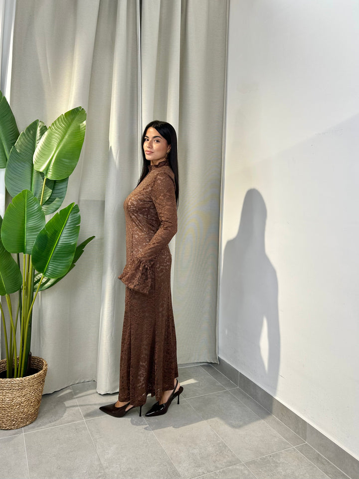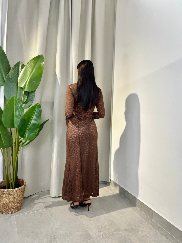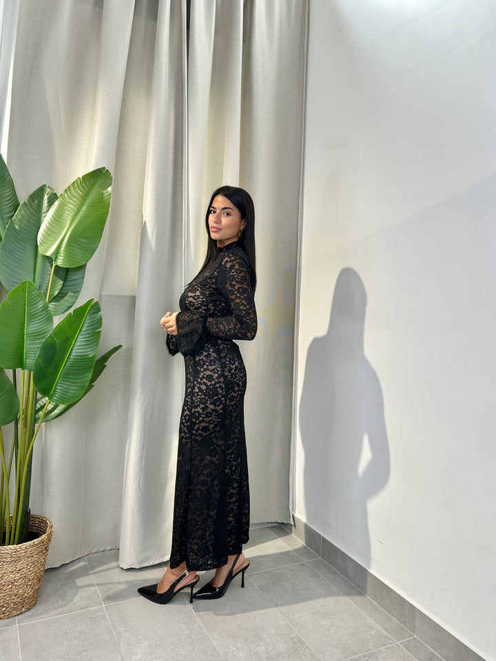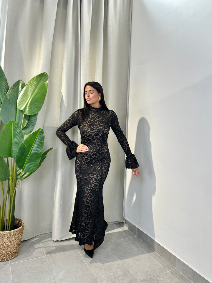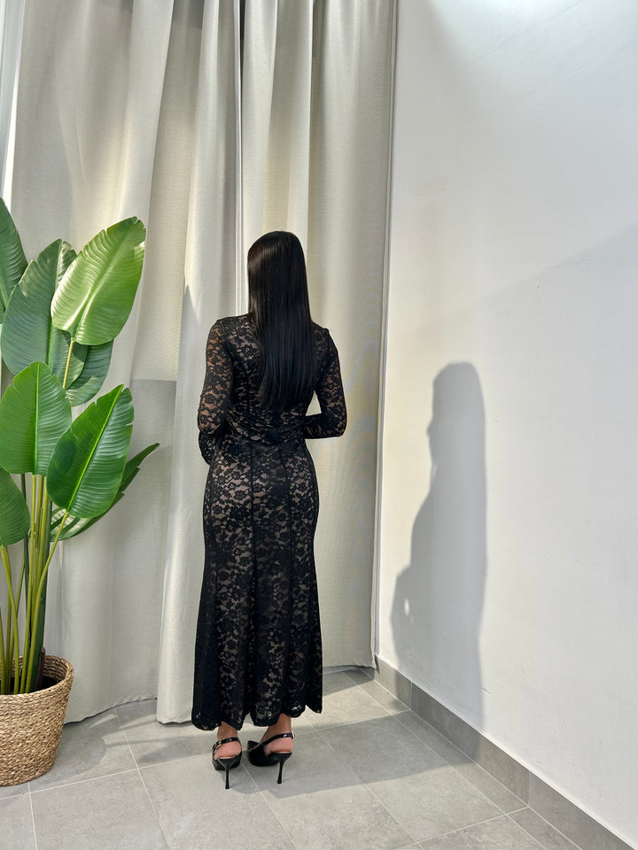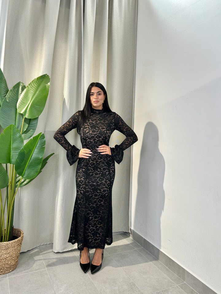 -Tubino in macramè con sottoveste nude;Manica leggermente scampanata e zip sul retro;