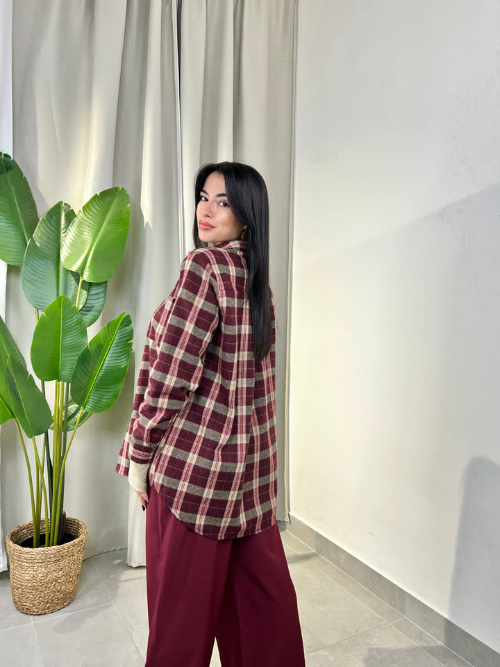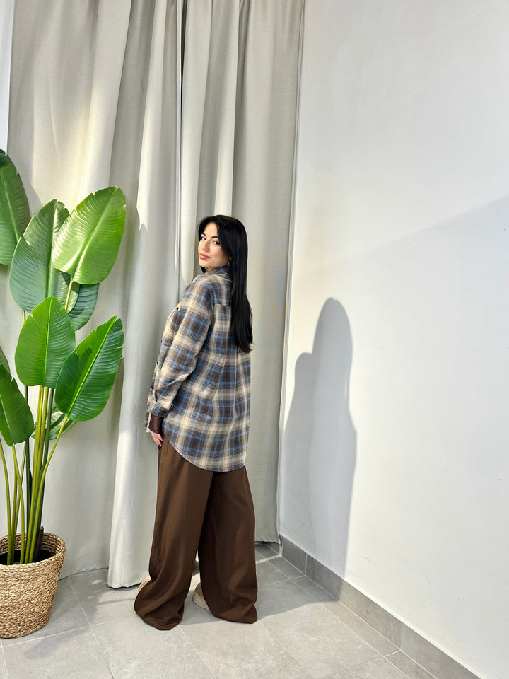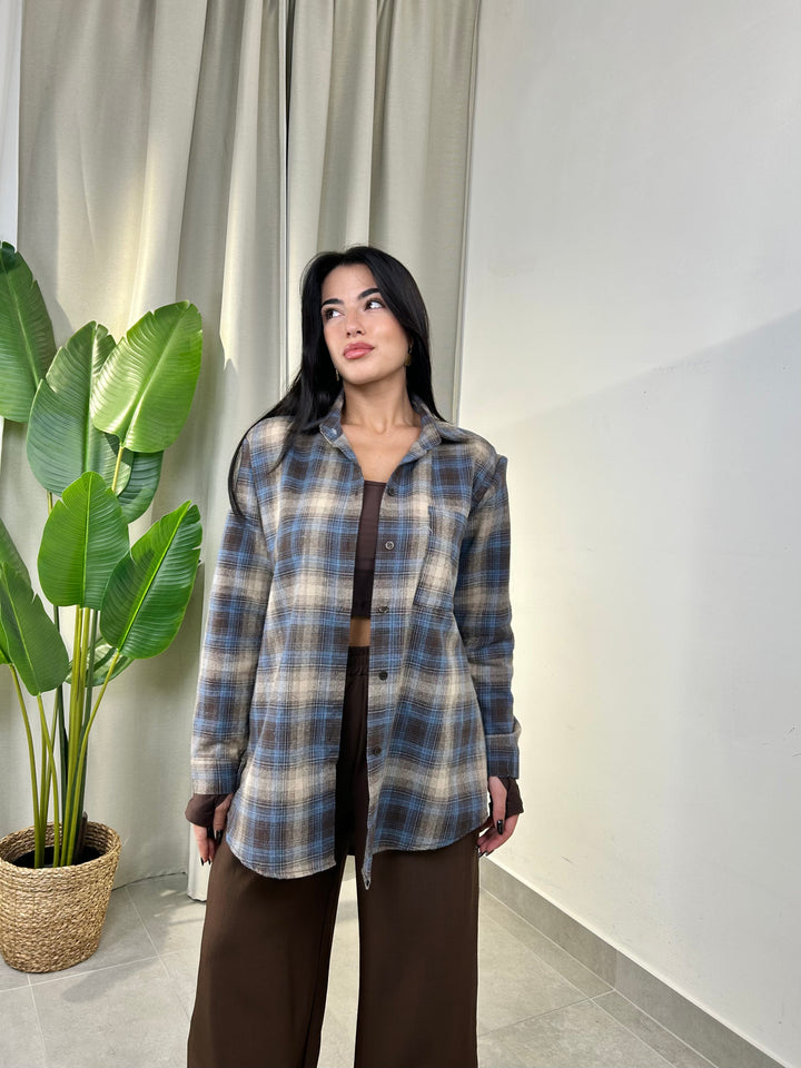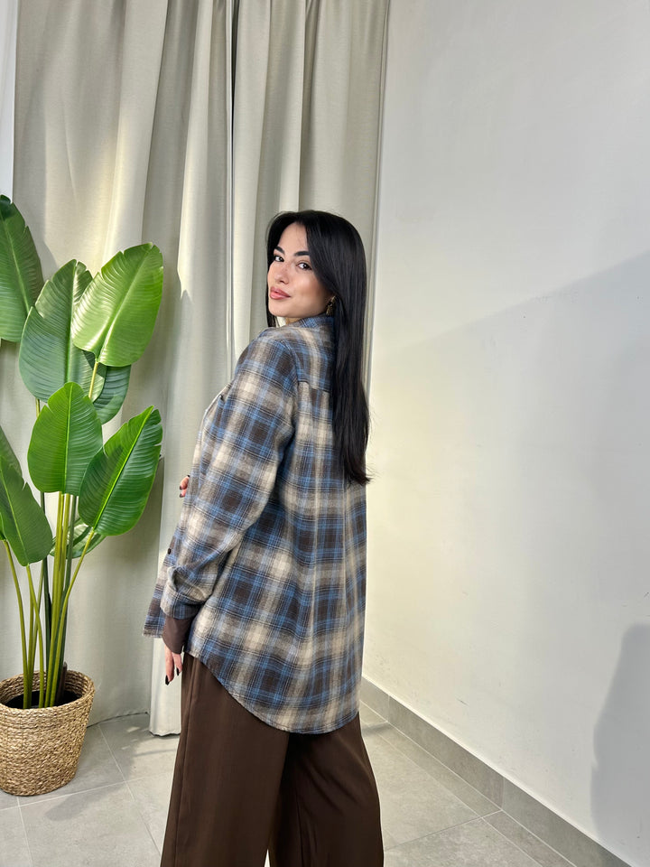 -Camicione in flanella fantasia a quadri con taschino laterale;Spalline imbottite;