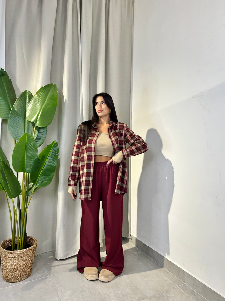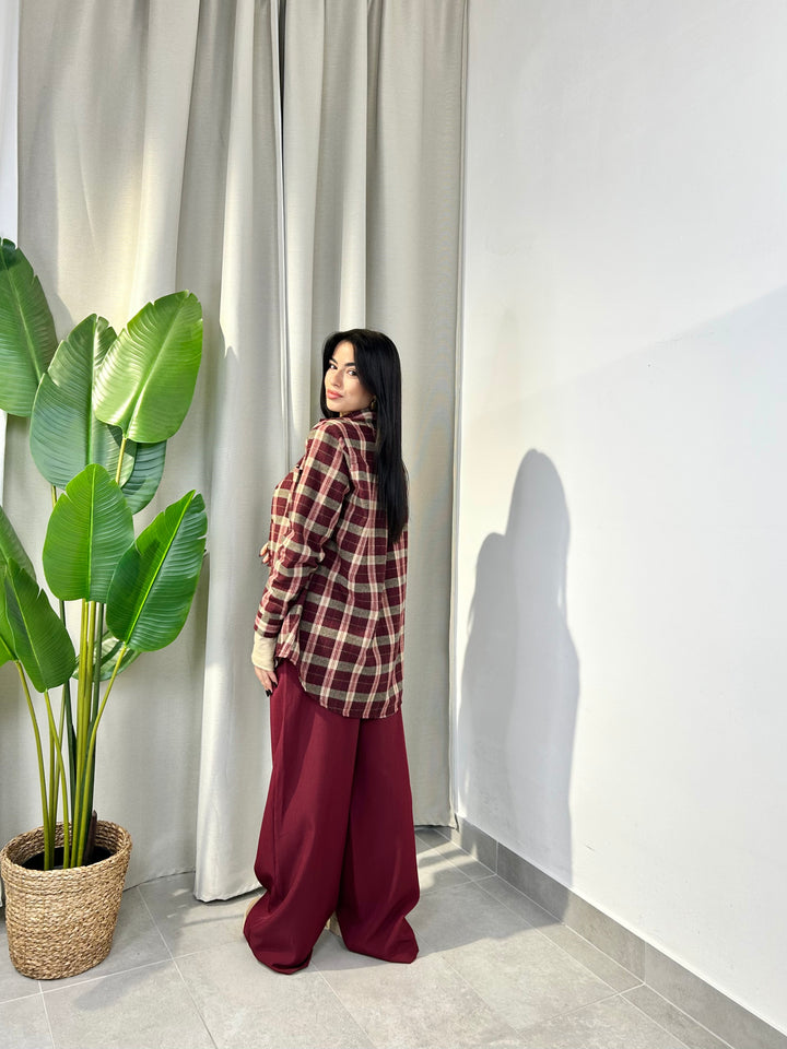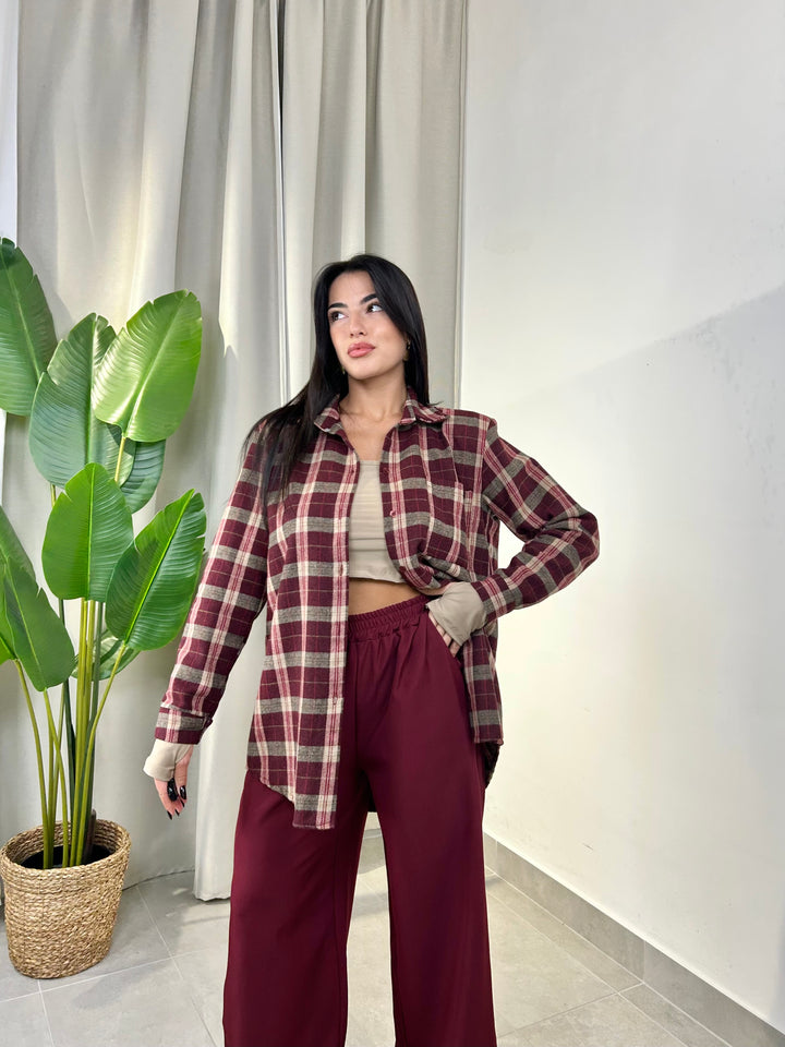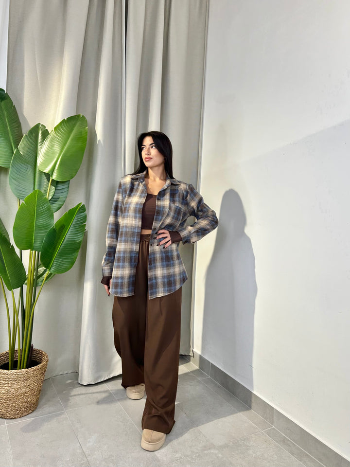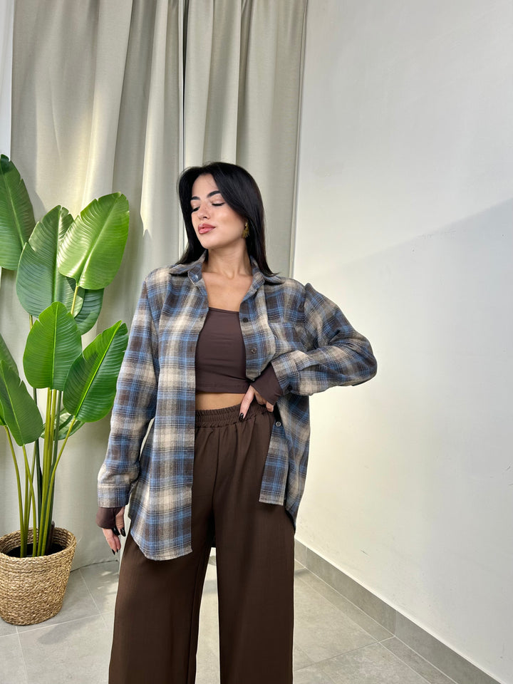 -Camicione in flanella fantasia a quadri con taschino laterale;Spalline imbottite;