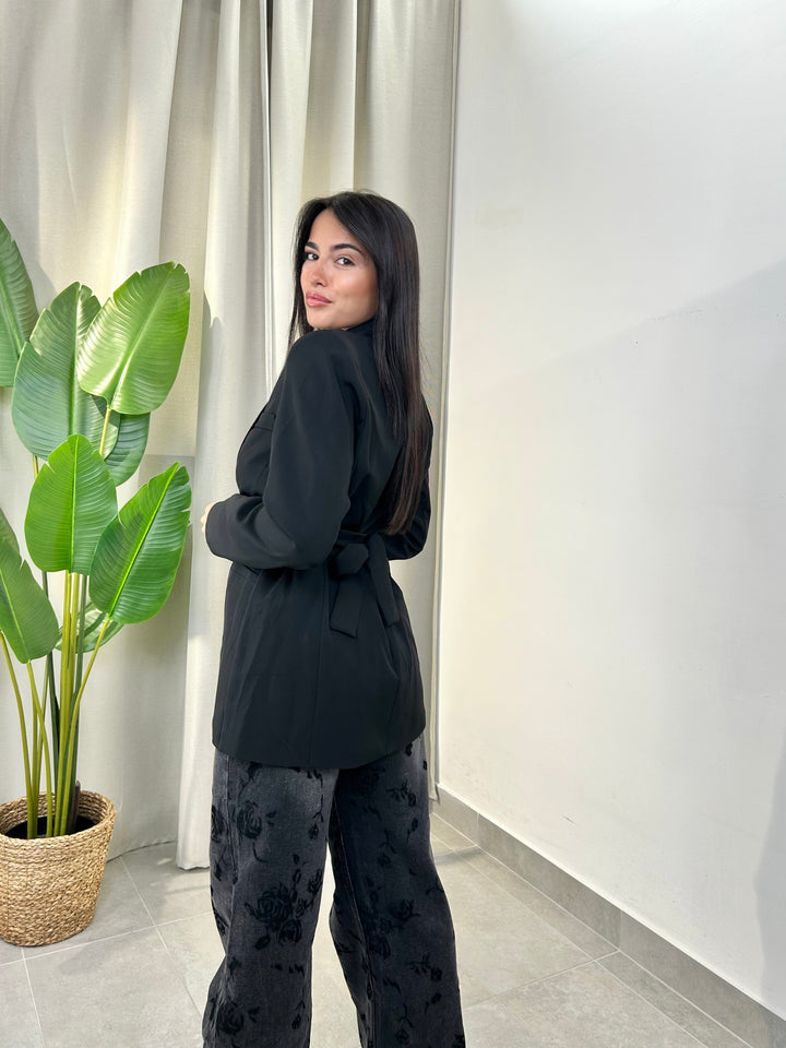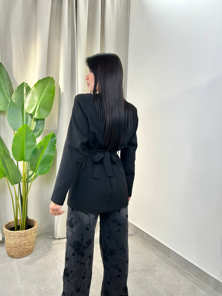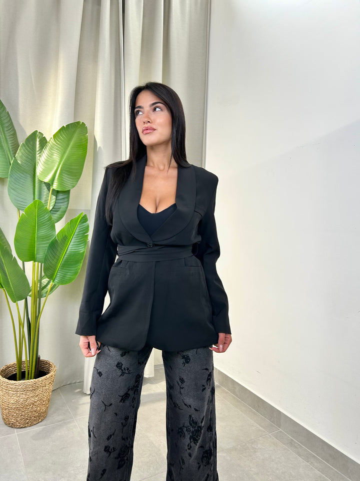 -Giacca monopetto con fusciacca in vita e spalline imbottite;