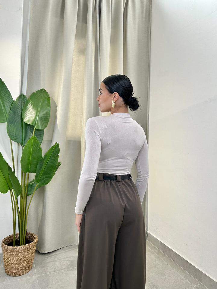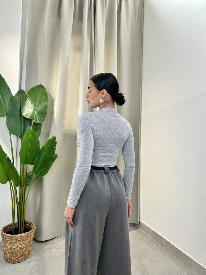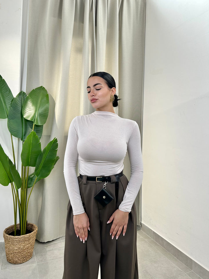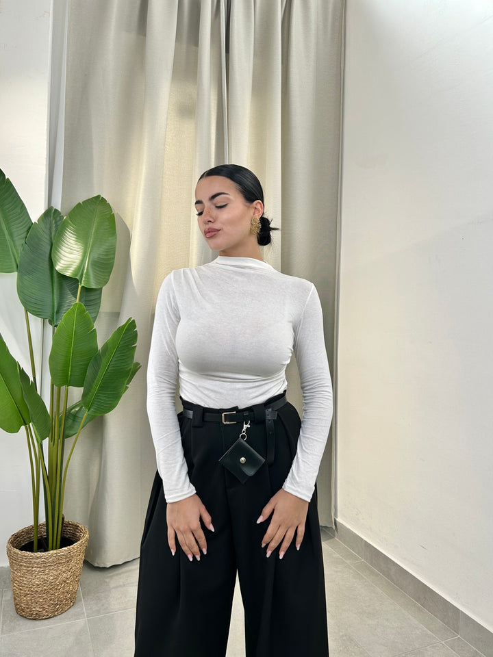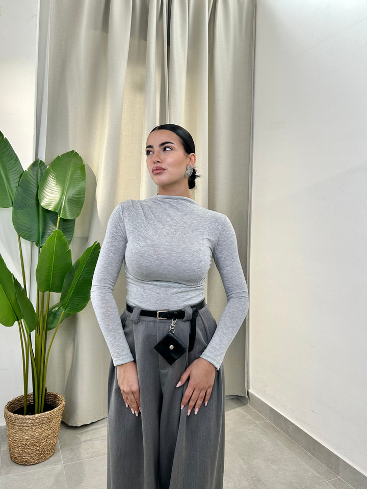 -Maglia basic mezzo collo con drappeggio sul fianco sinistro e sulla spalla destra;