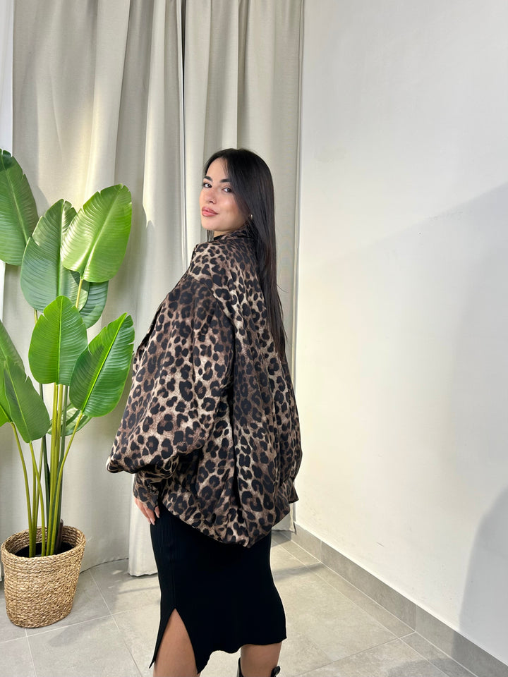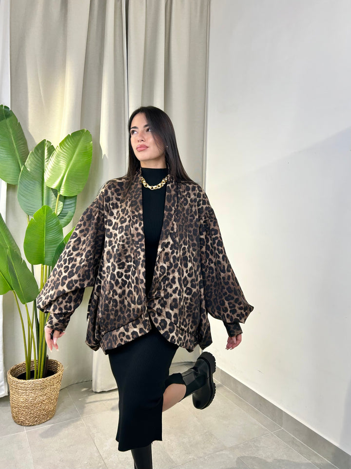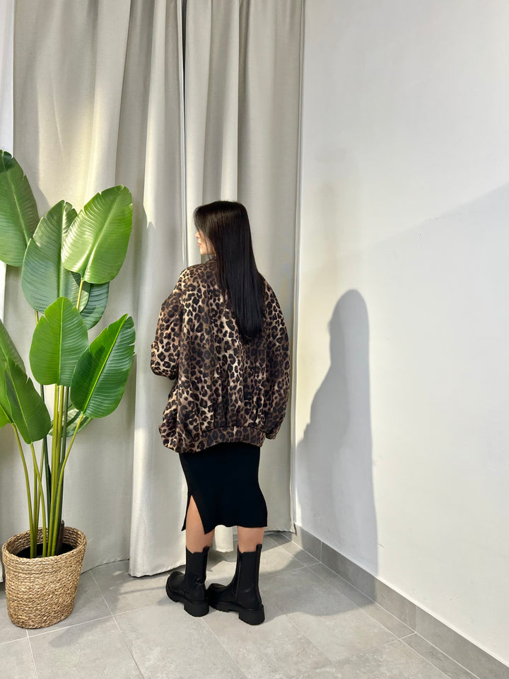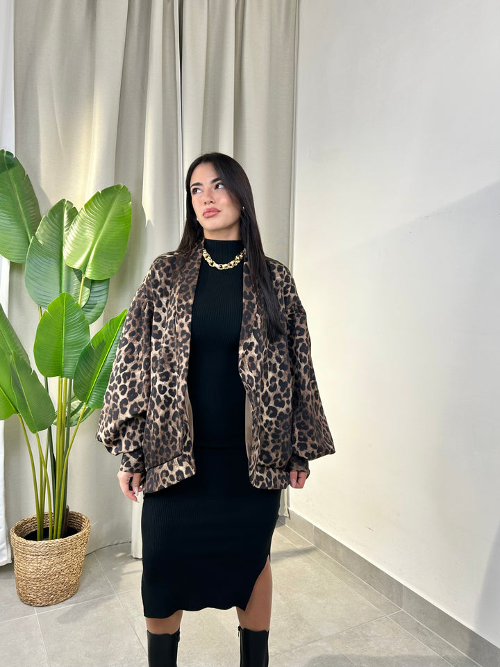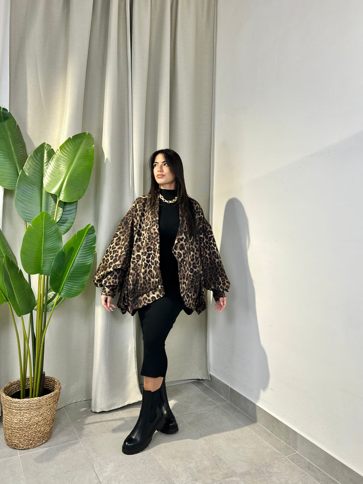 -Bomber oversize fantasia maculata con manica a palloncino;Interno foderato;
