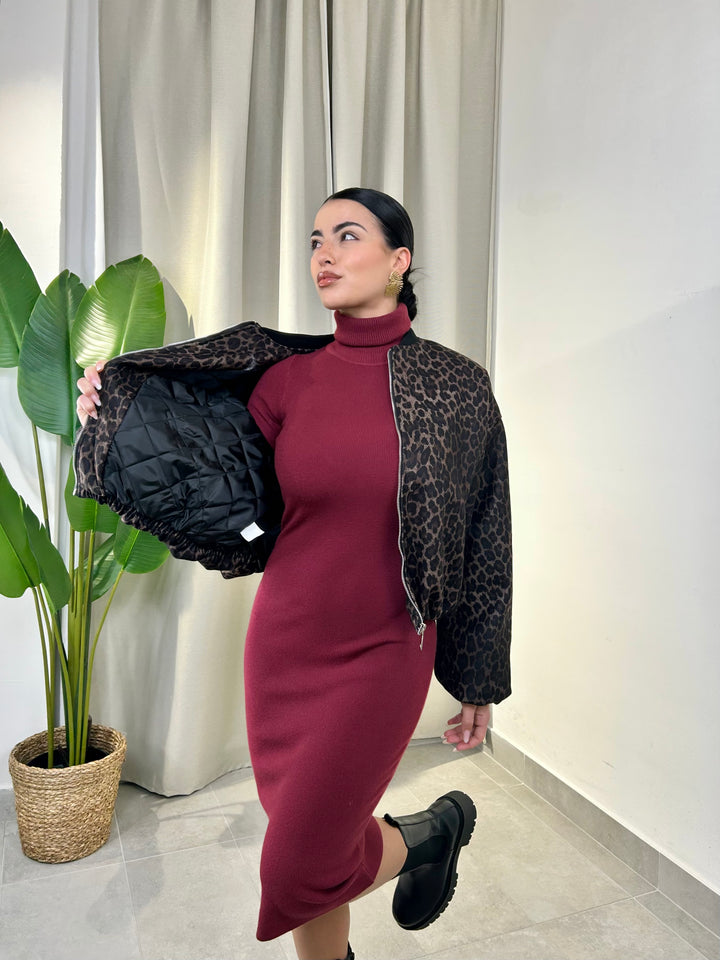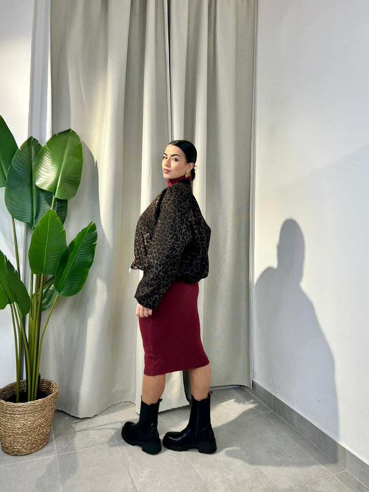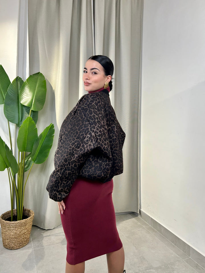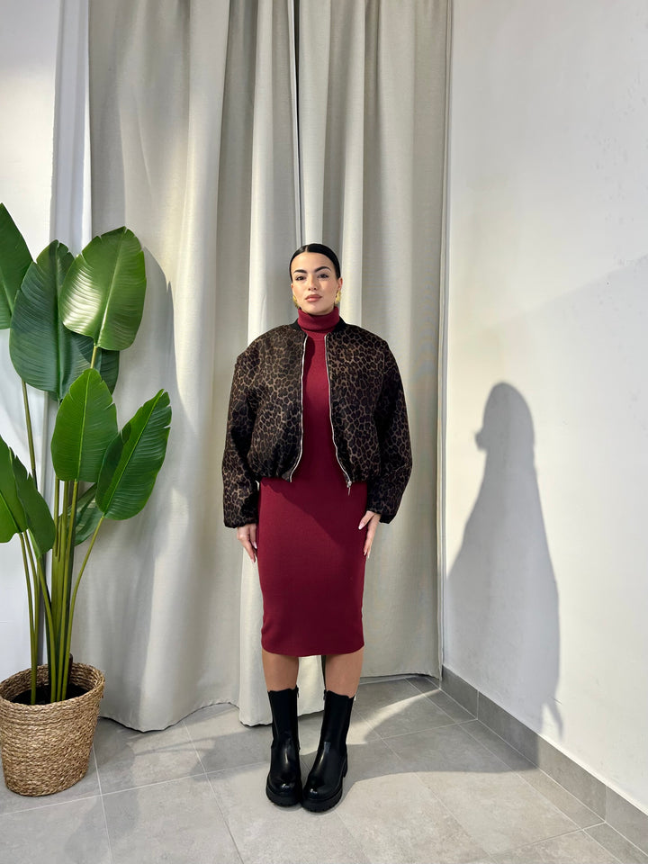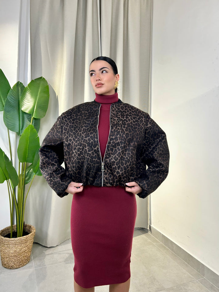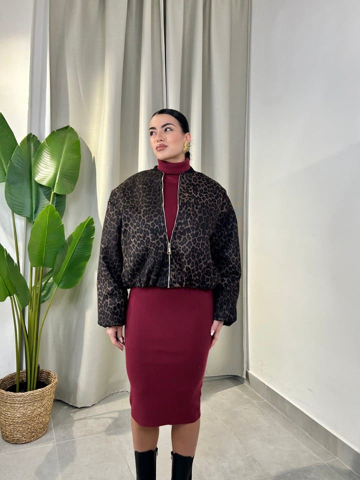 -Bomber in panno fantasia animalier con zip centrale;