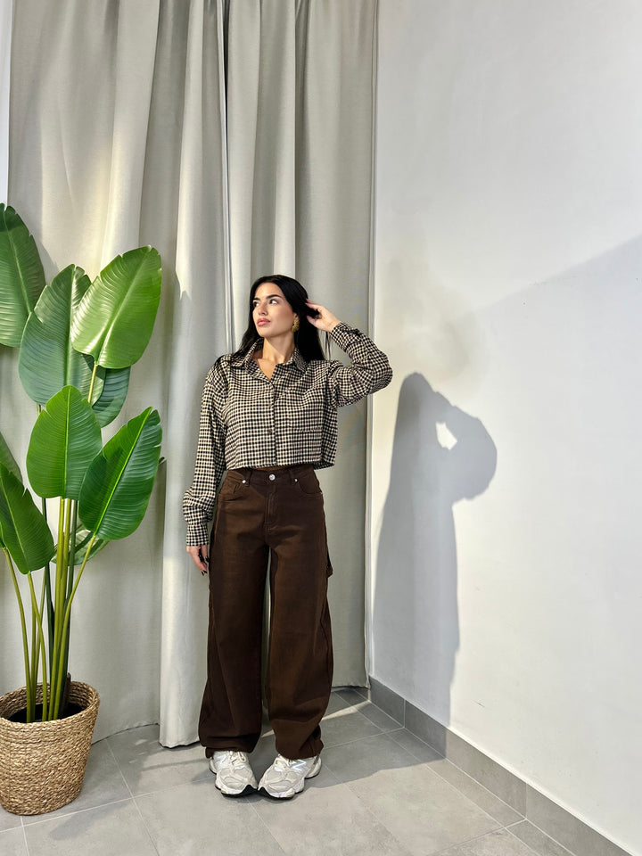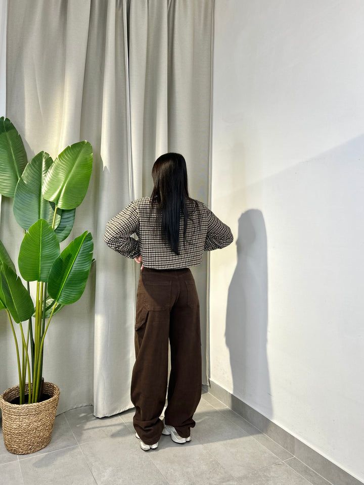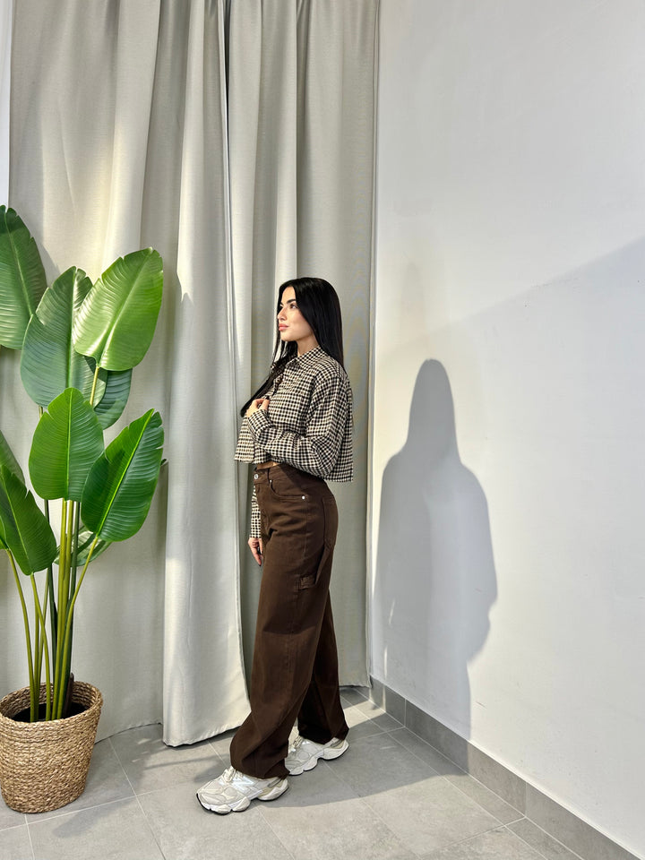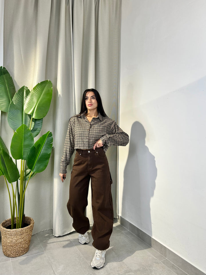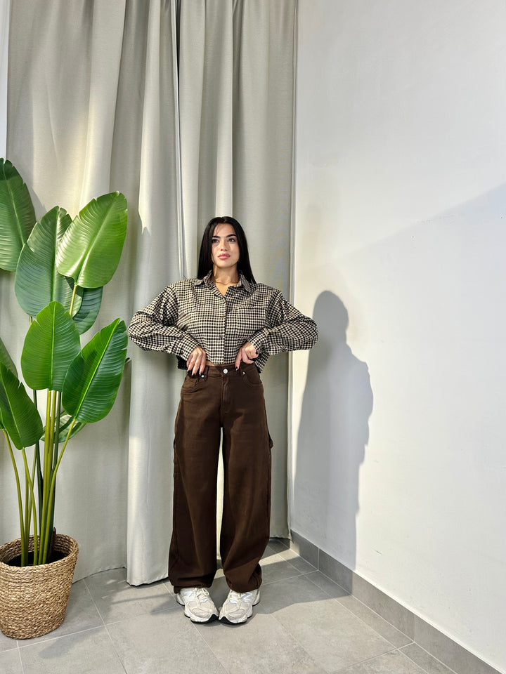 -Jeans marrone Mod.Wide Ballon in tela elasticizzata;