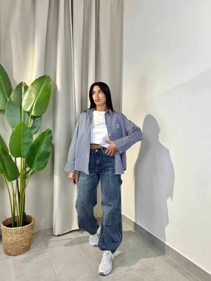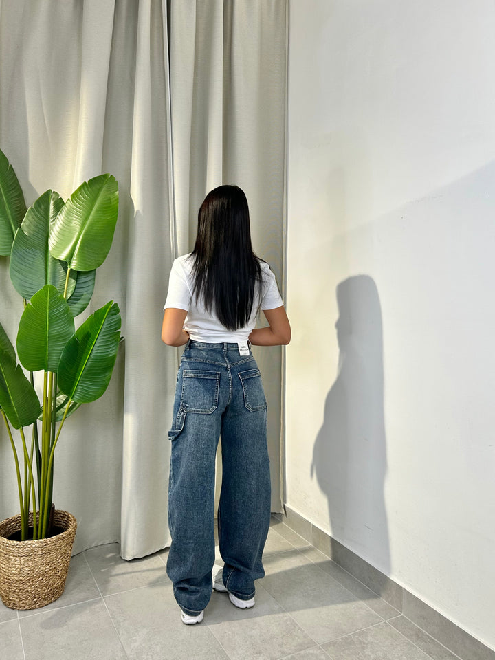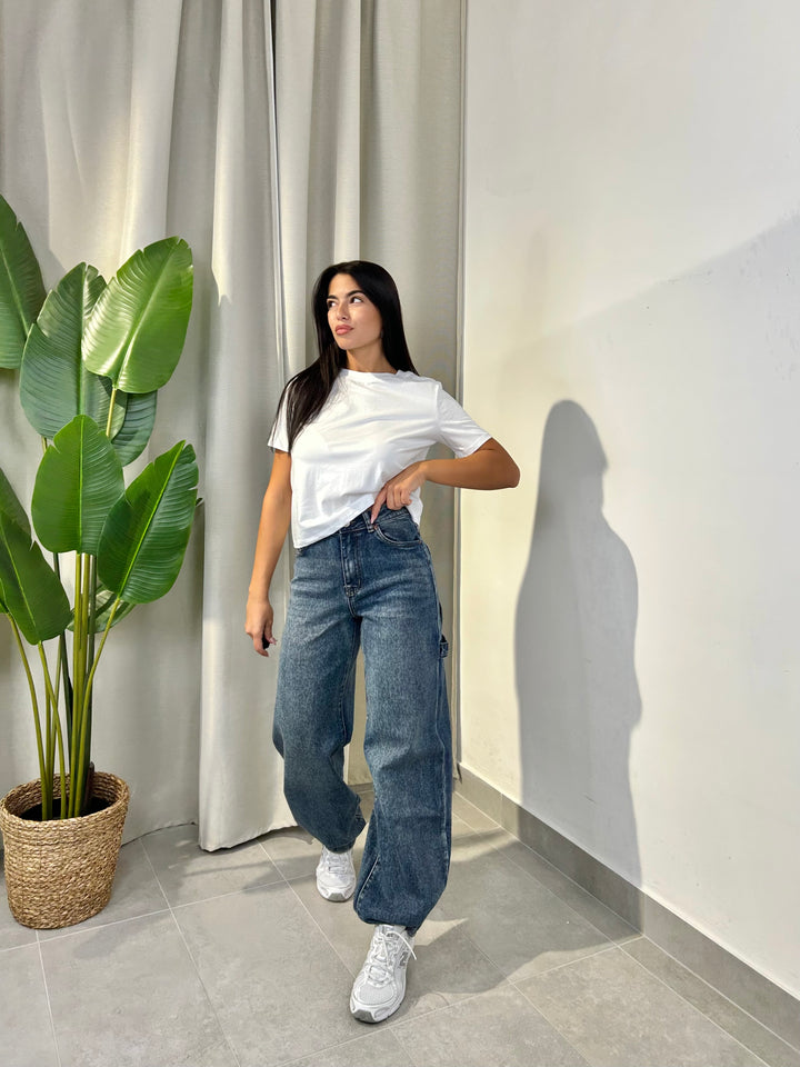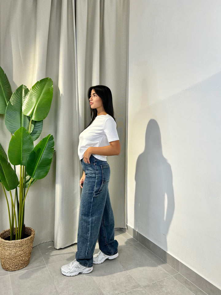 -Jeans Mod Wide Ballon effetto maculato all’interno tinta su tinta;