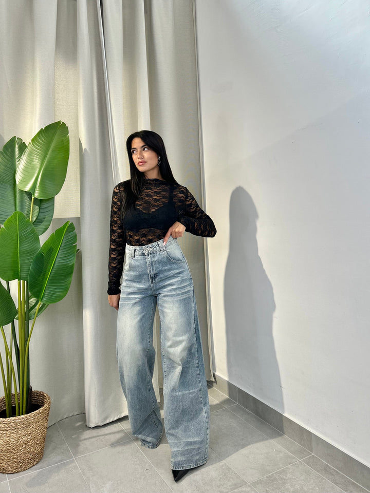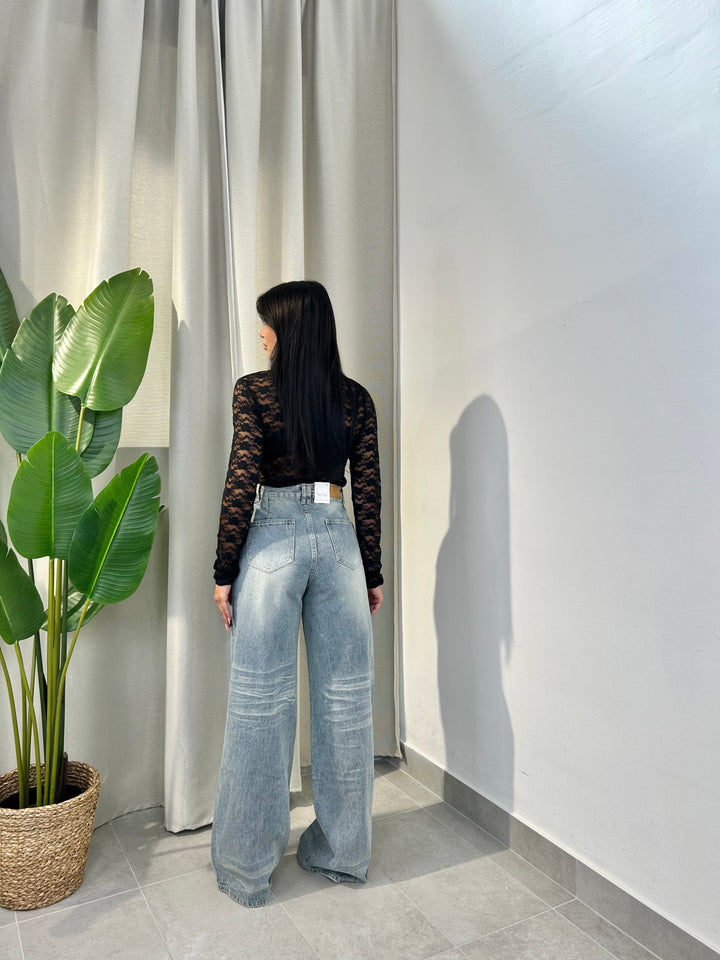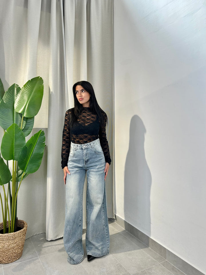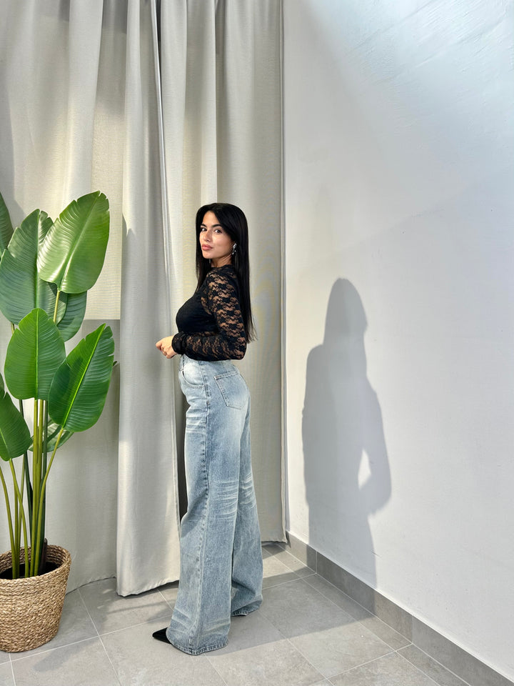 -Jeans Mod Palazzo effetto sabbiato all’interno;