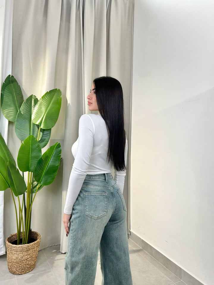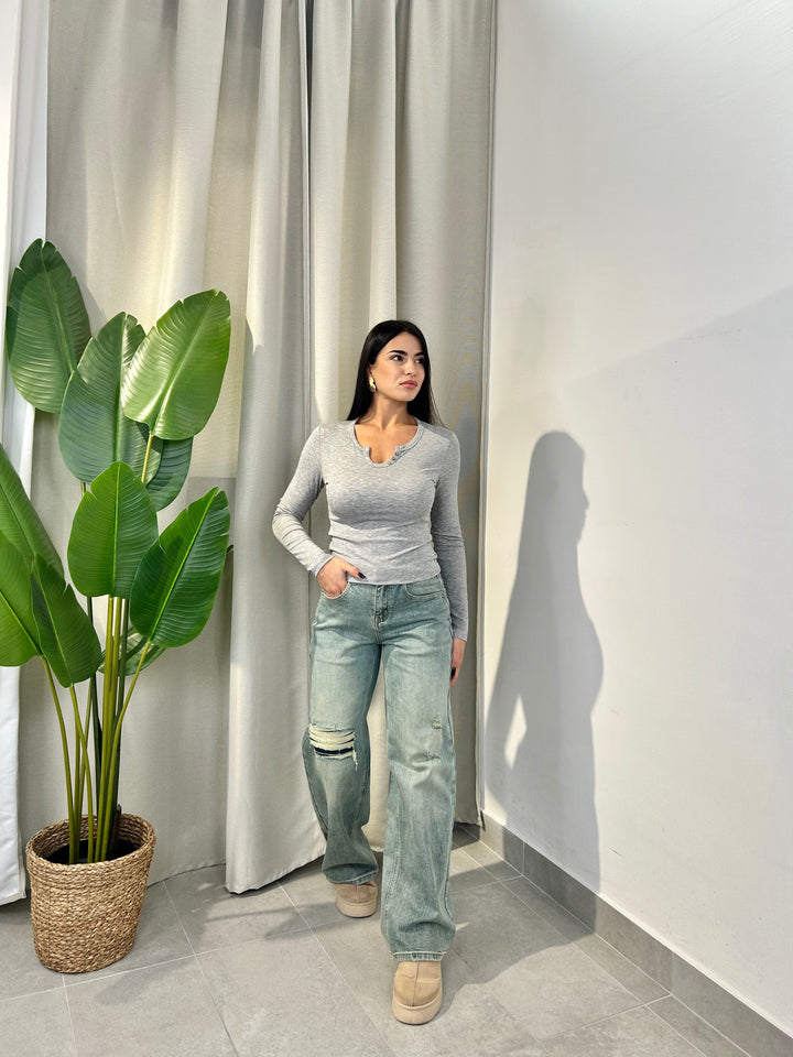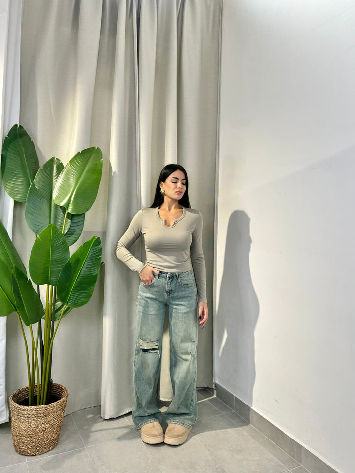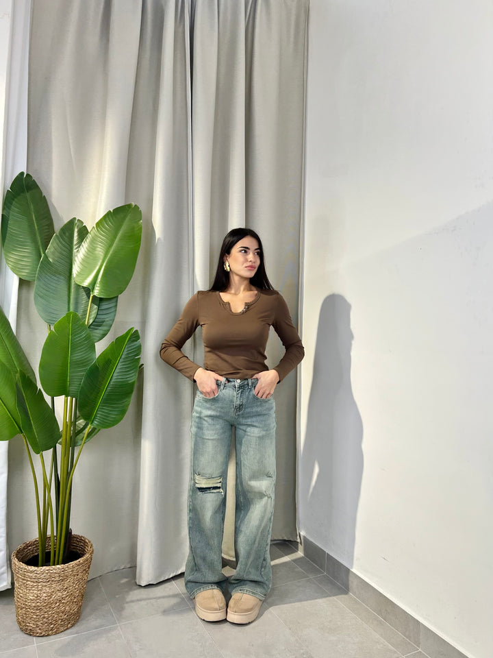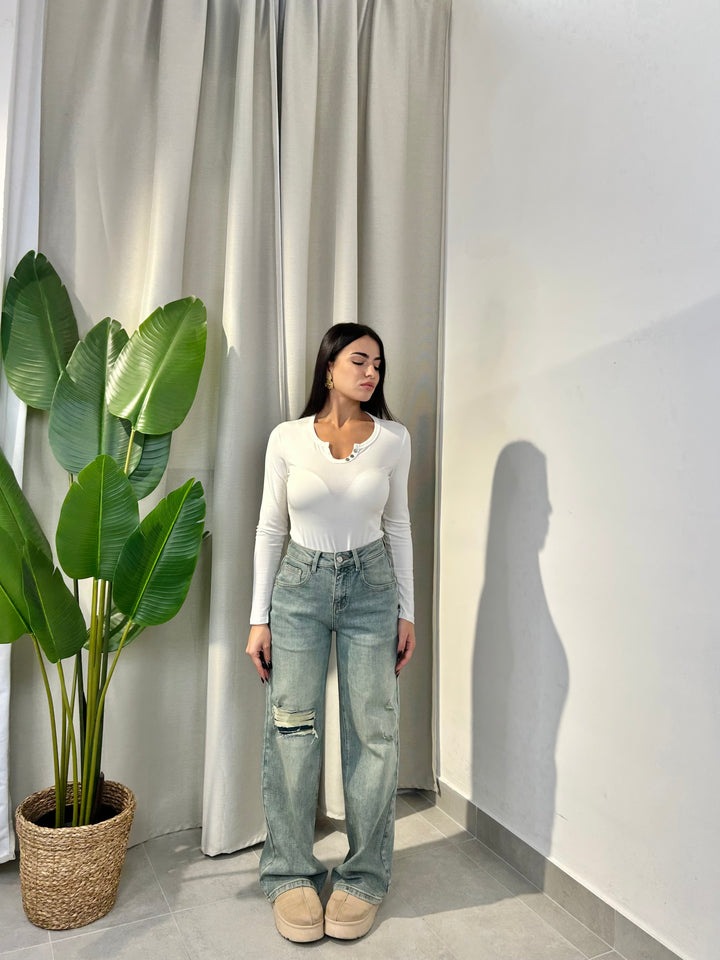 -Maglia 92% cotone con scollo rotondo e finti bottoncini;