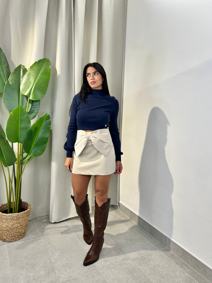 -Maglioncino in lana mezzo collo con manica leggermente gonfia;