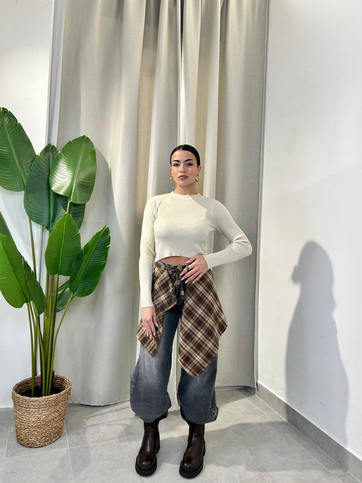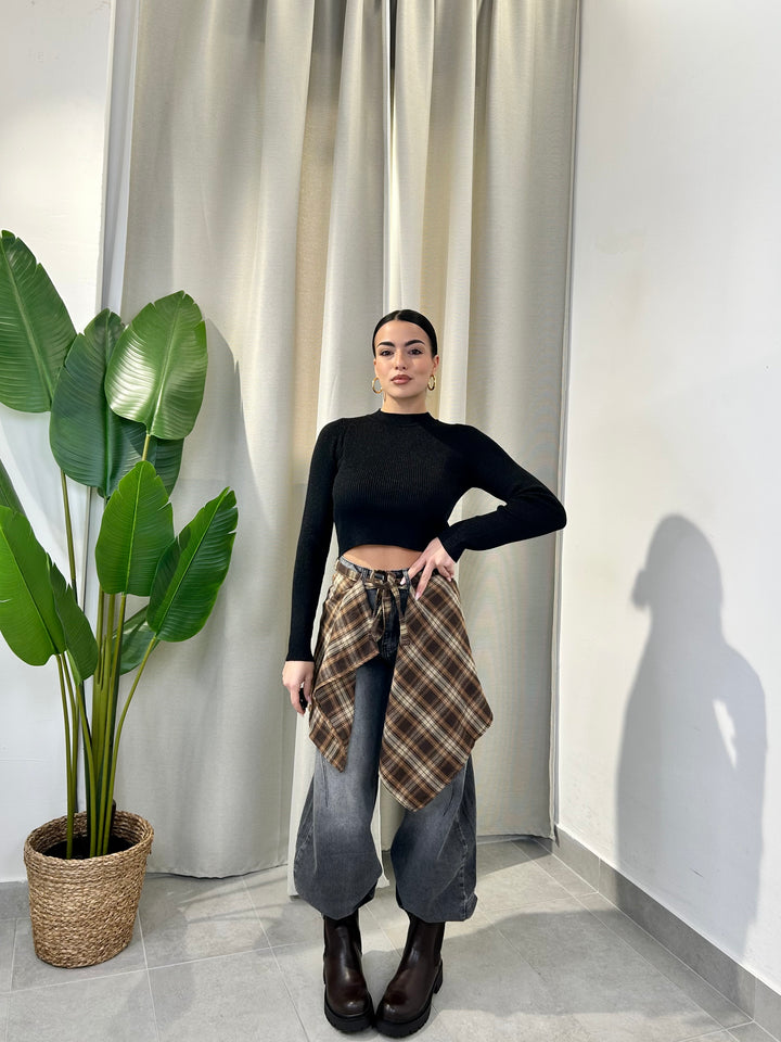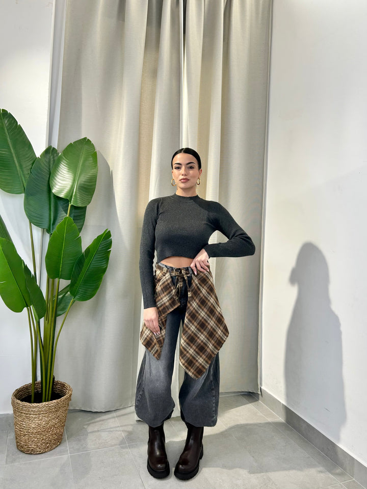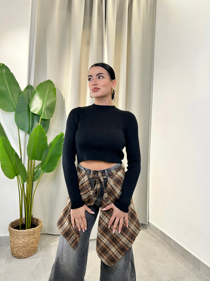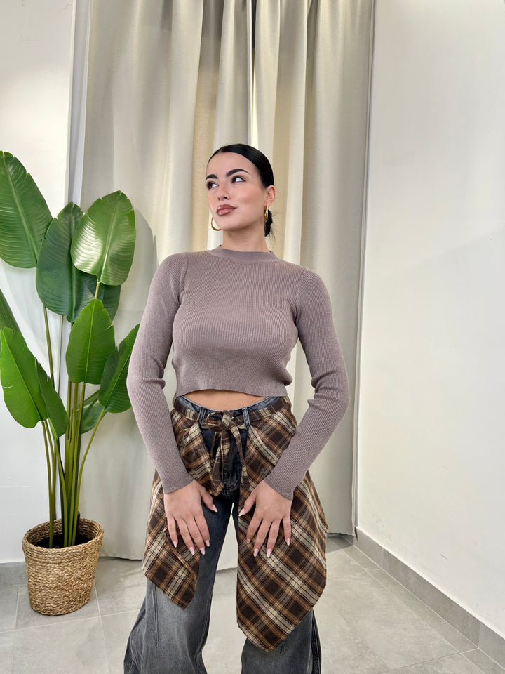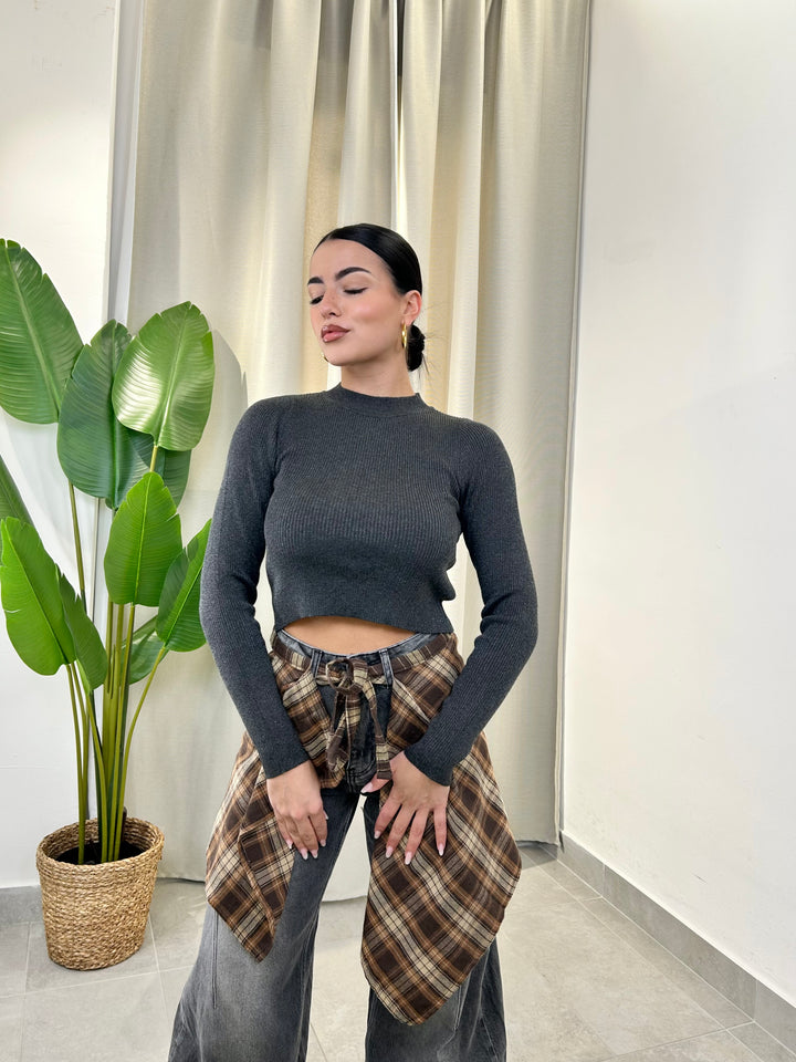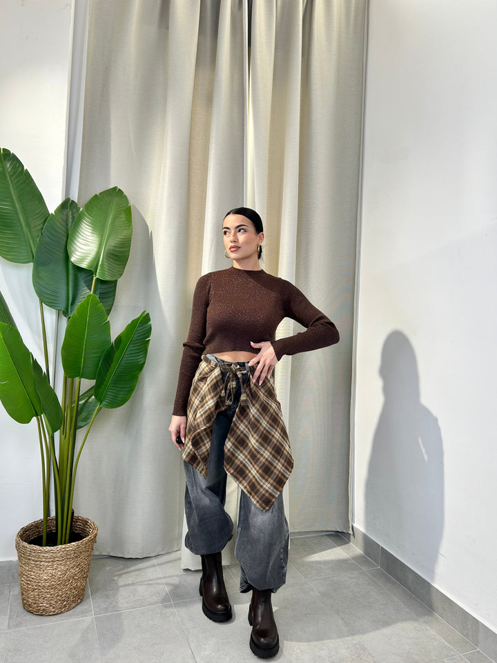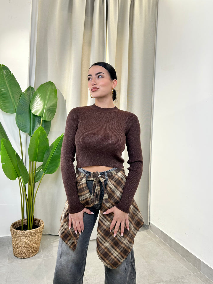 -Maglioncino mezzo collo effetto lurex a costine stretto;