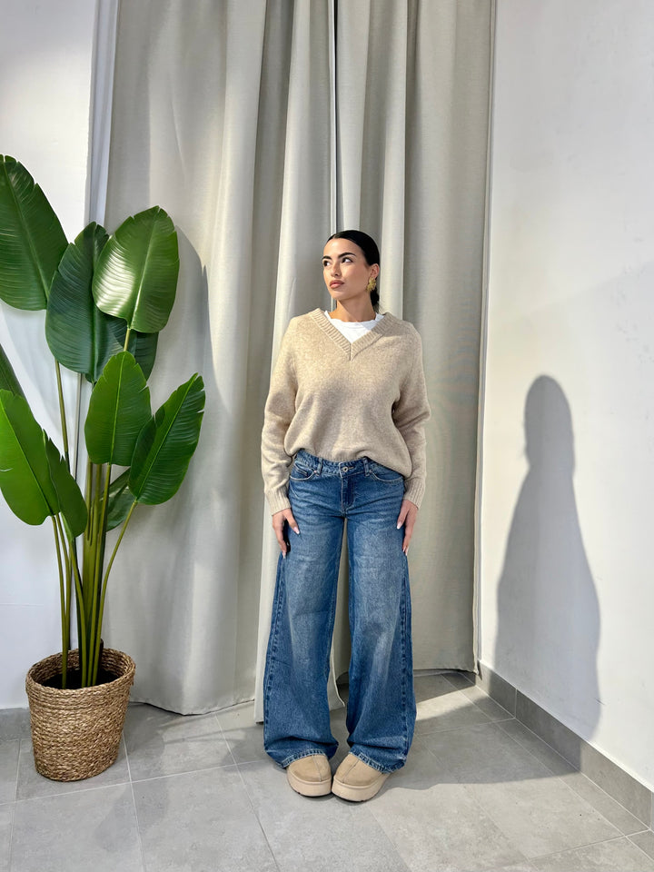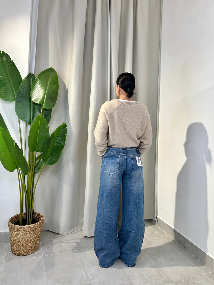 -Jeans Mod.Palazzo vita bassa in tela ferma;
