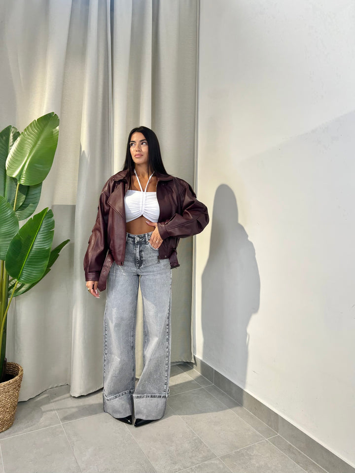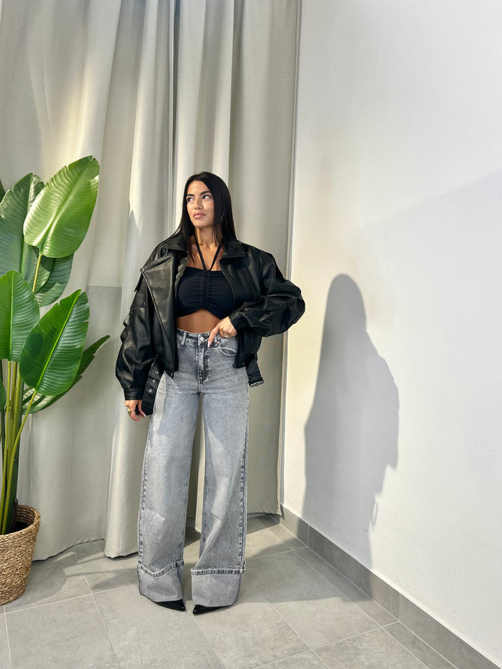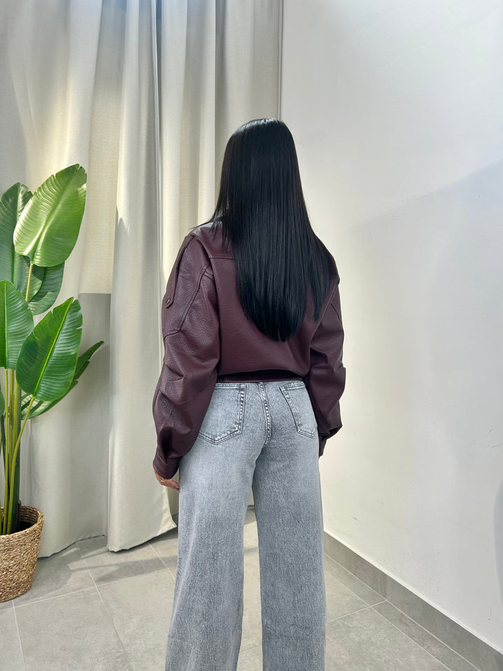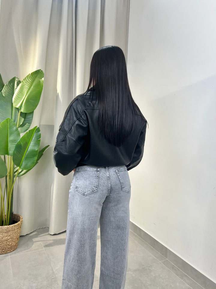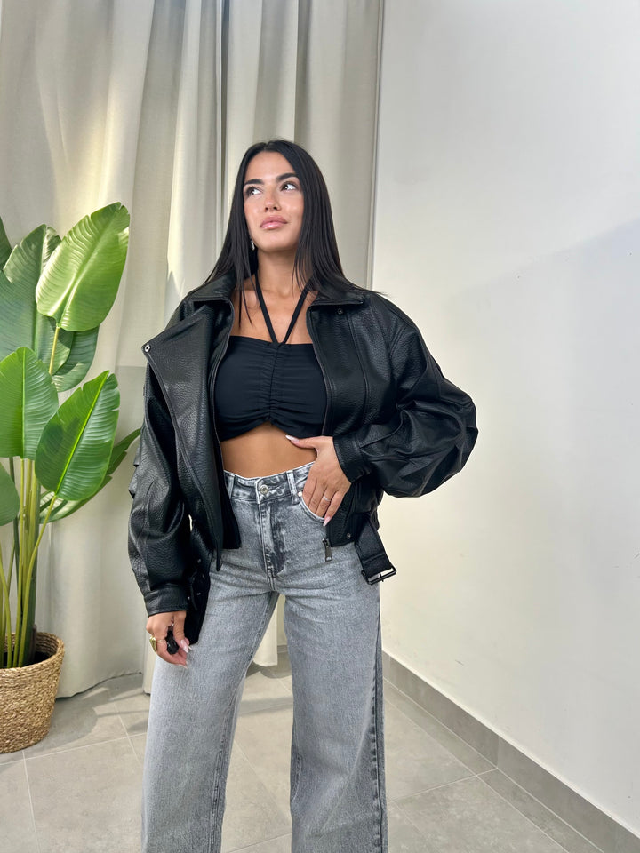 -Chiodo in ecopelle oversize con elastico in vita e cintura fissa;