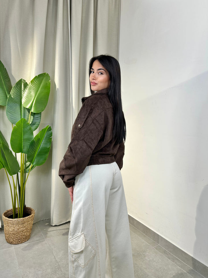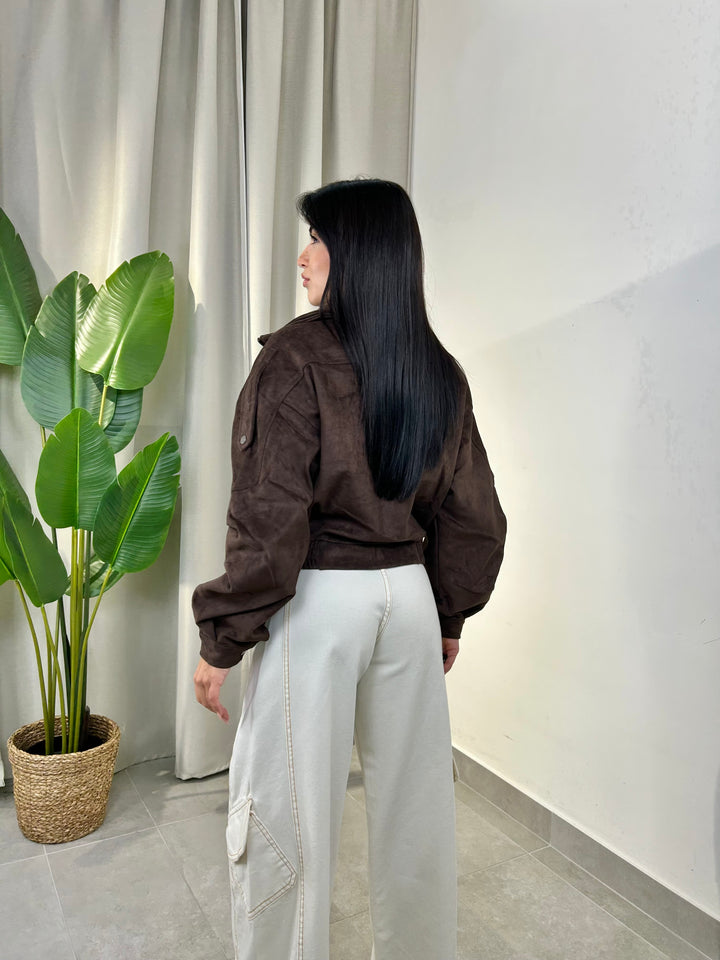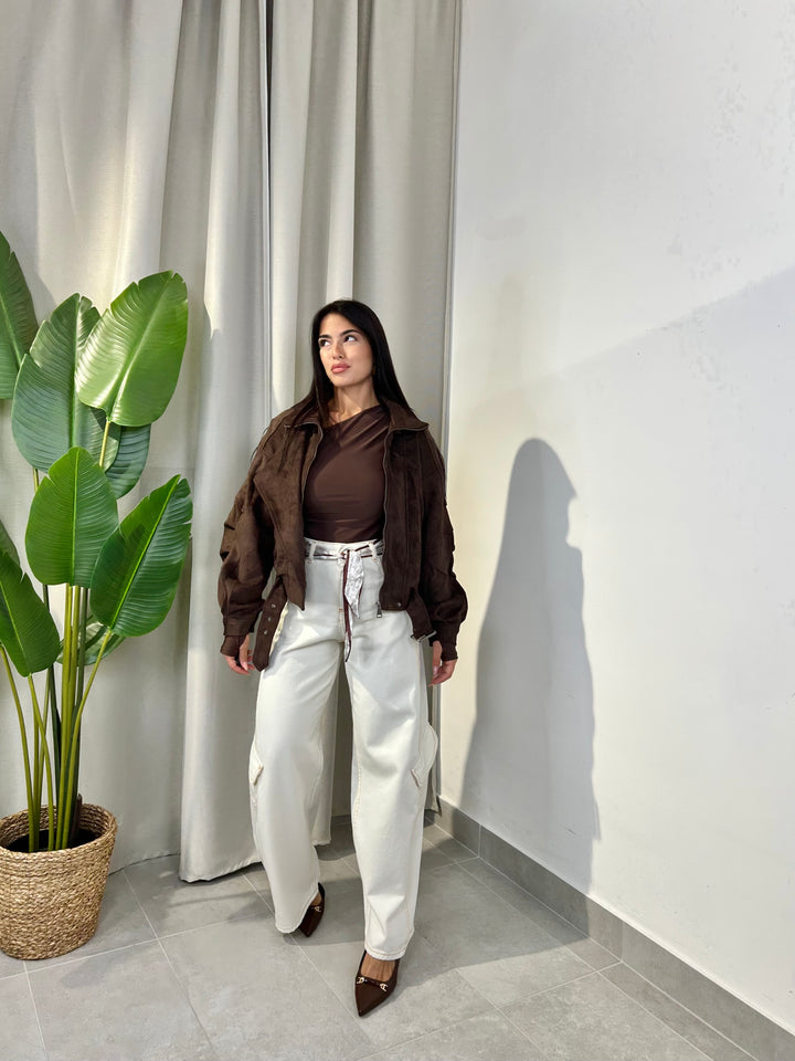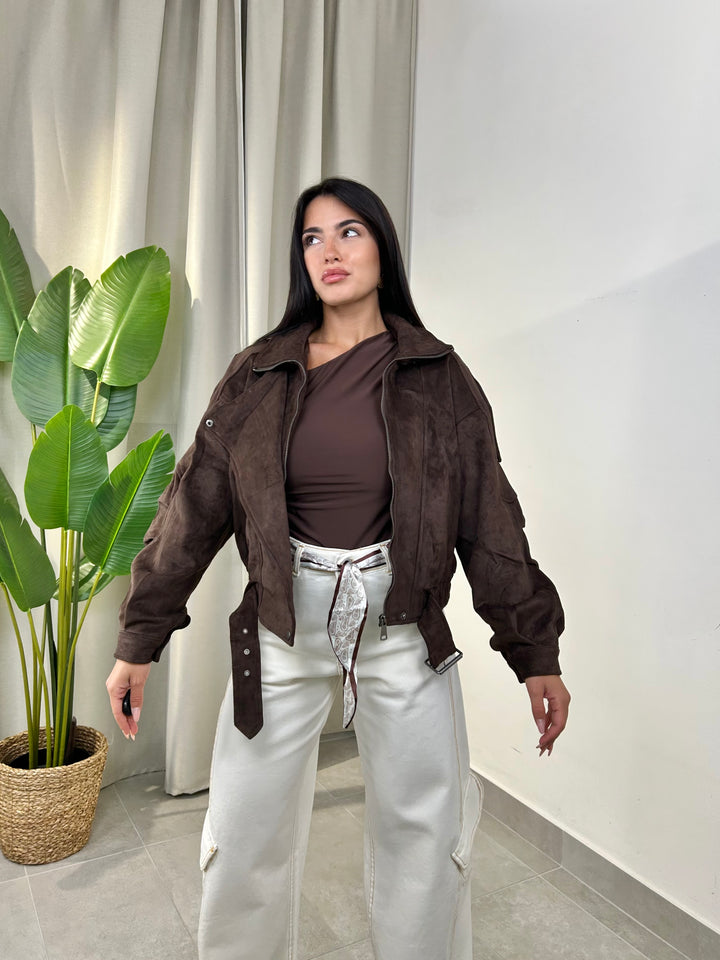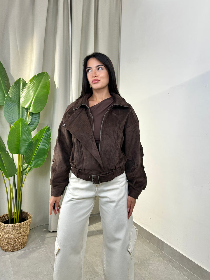 -Giubbotto modello chiodo scamosciato con molla in vita;