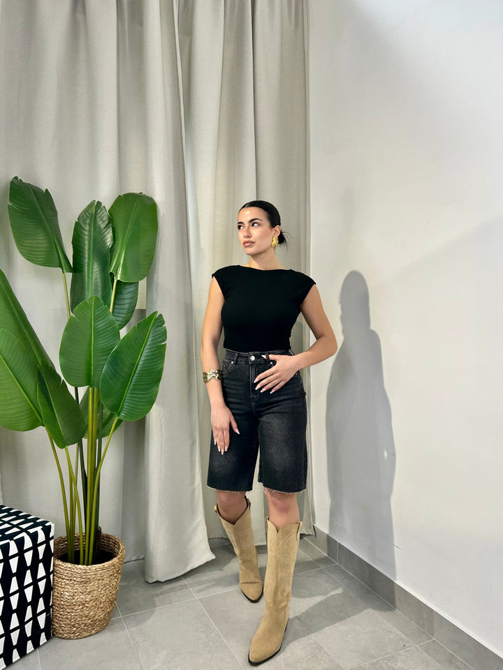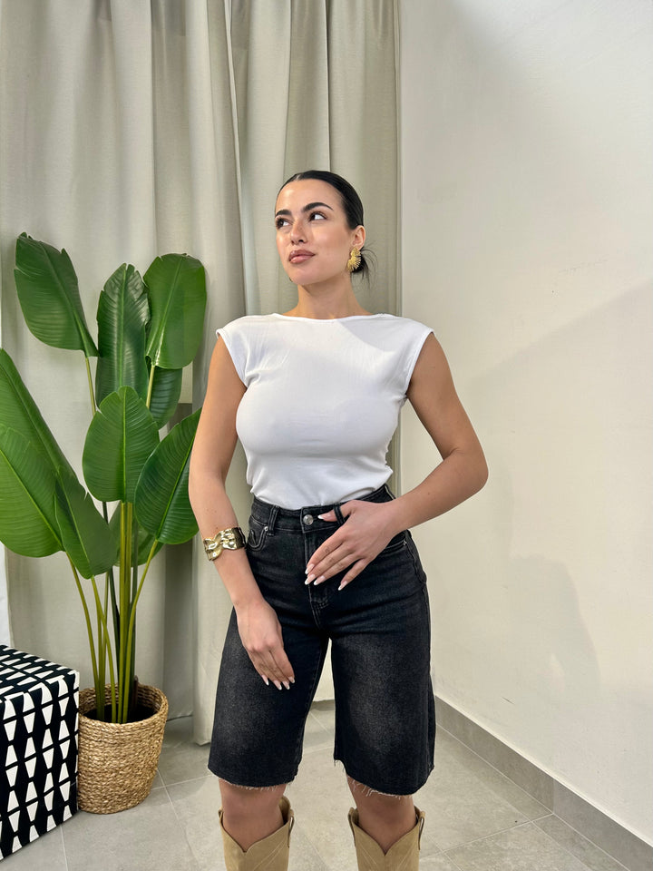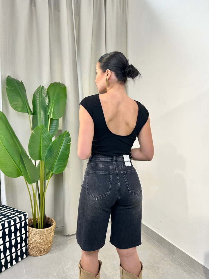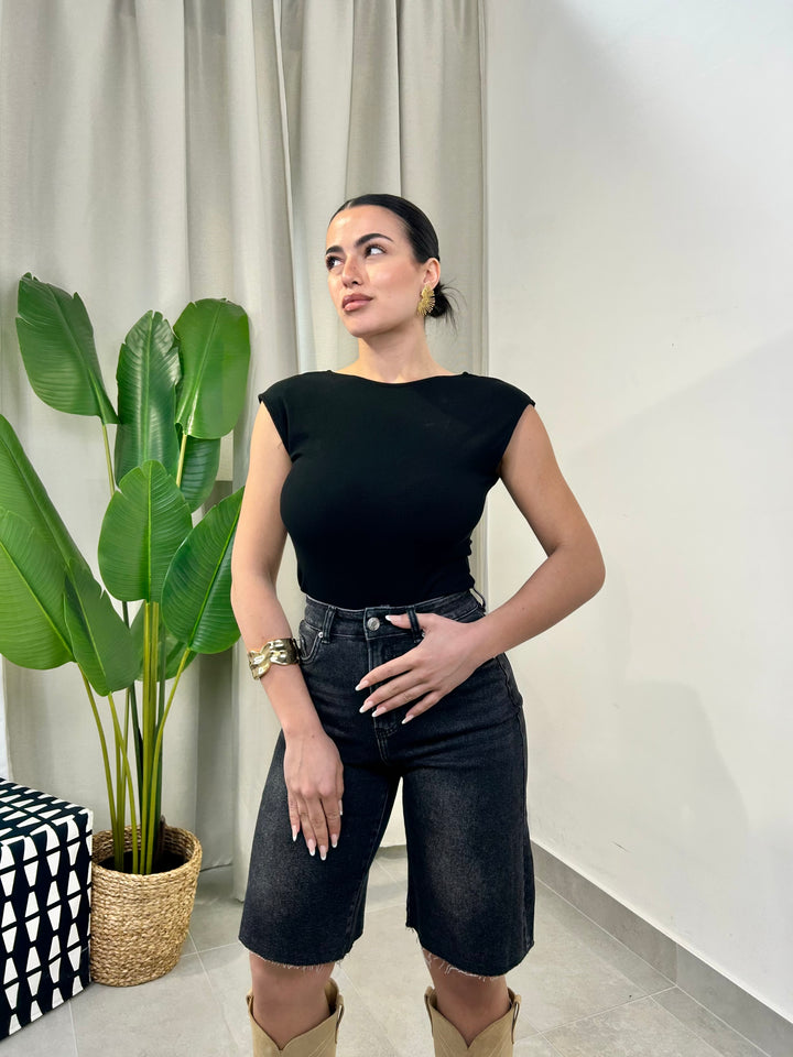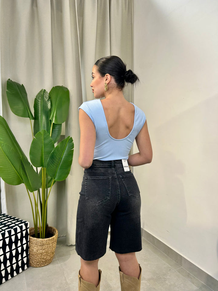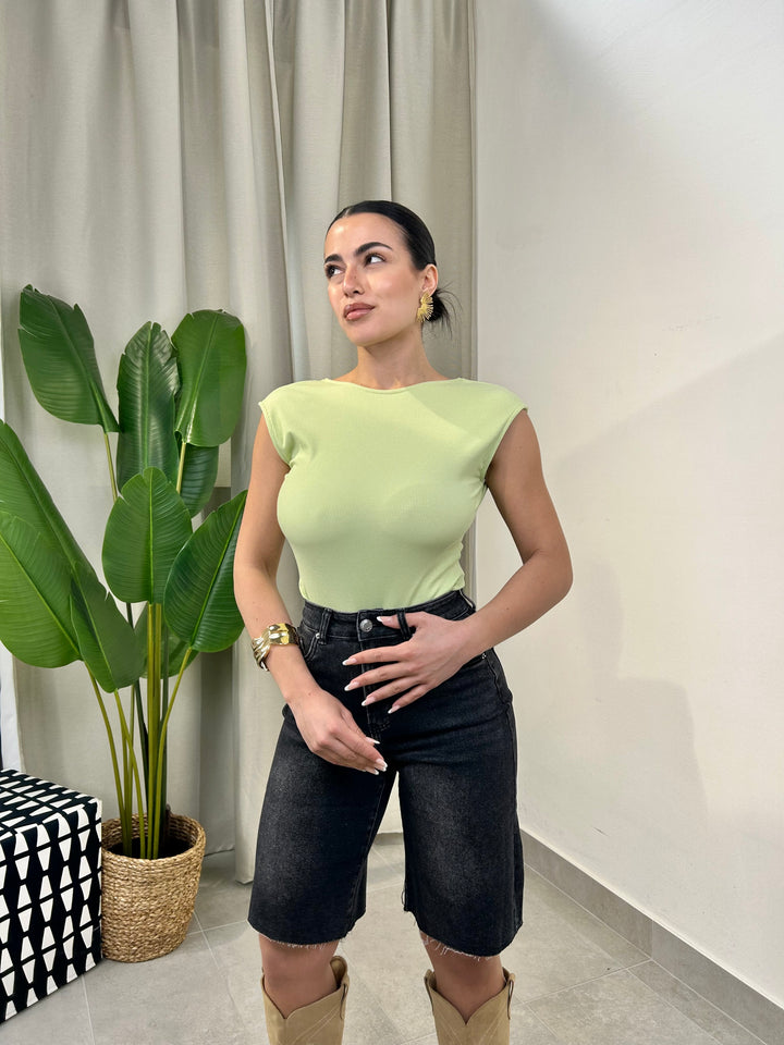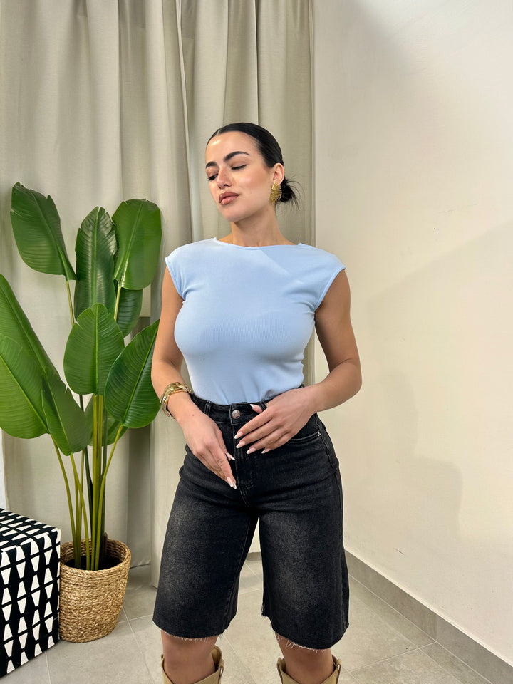 -Body a costine girocollo con schiena leggermente scoperta sul retro;