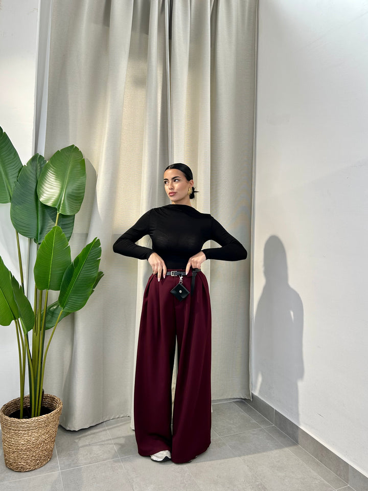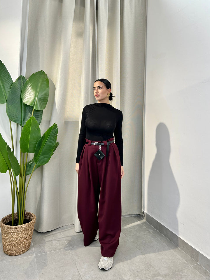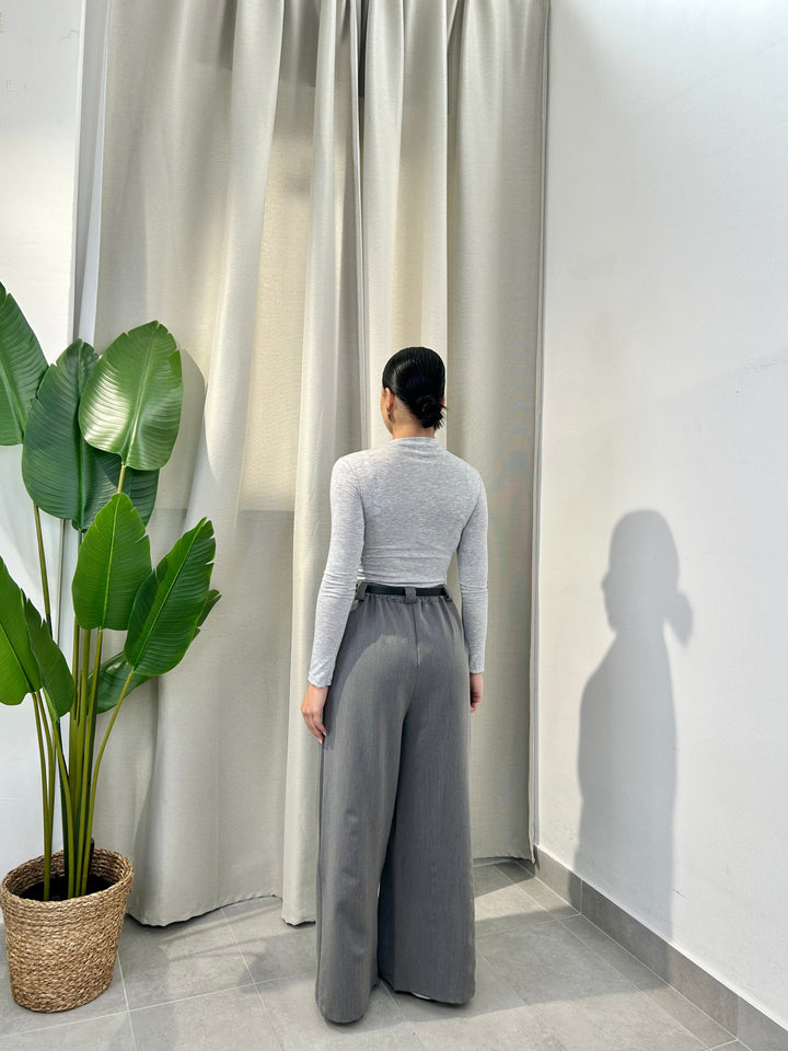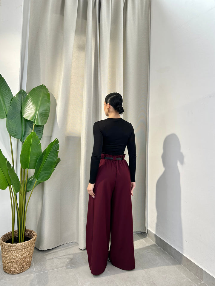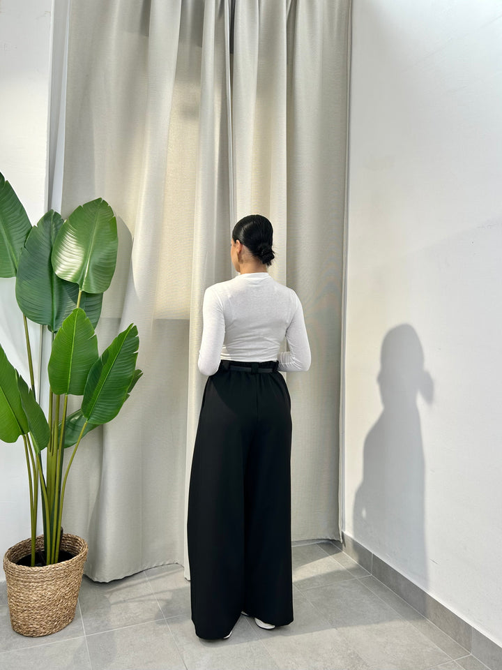 -Pantalone palazzo con pence centrale,compreso di cintura in vita;