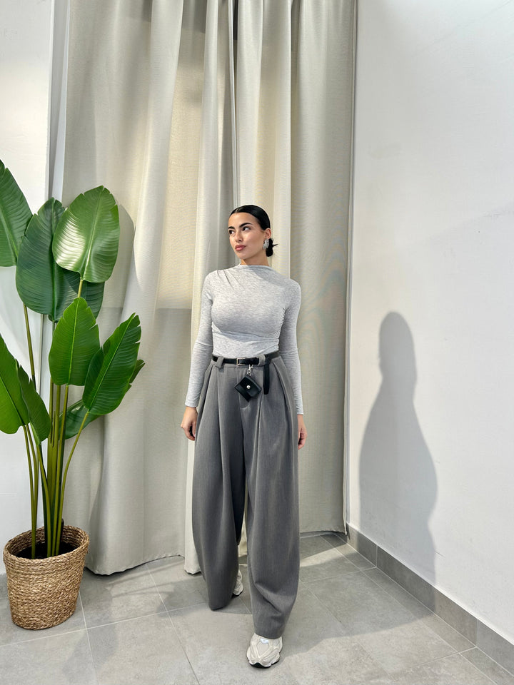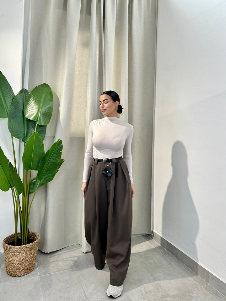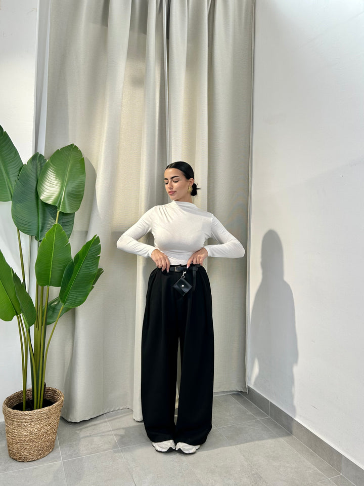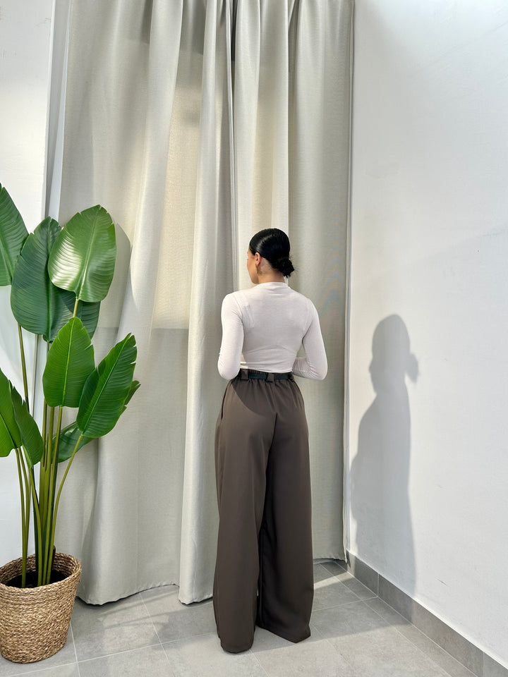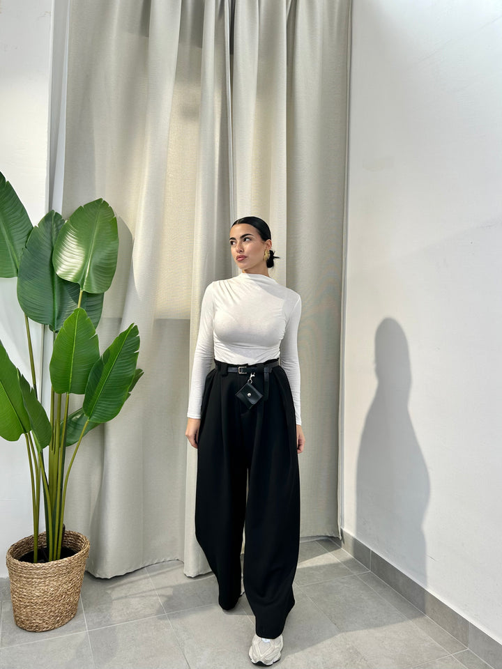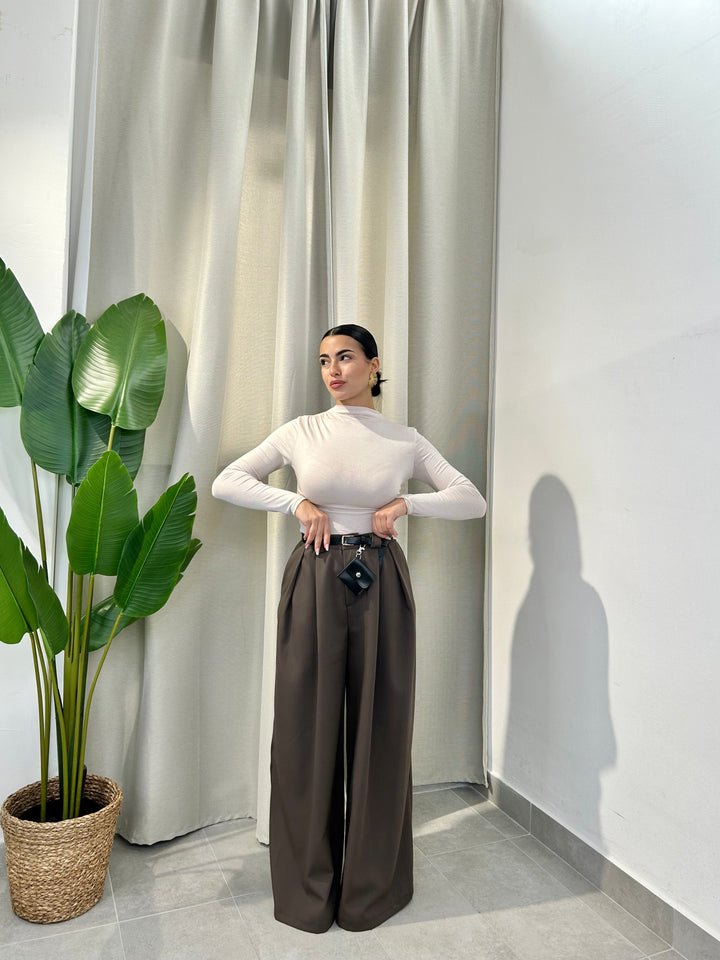 -Pantalone palazzo con pence centrale,compreso di cintura in vita;