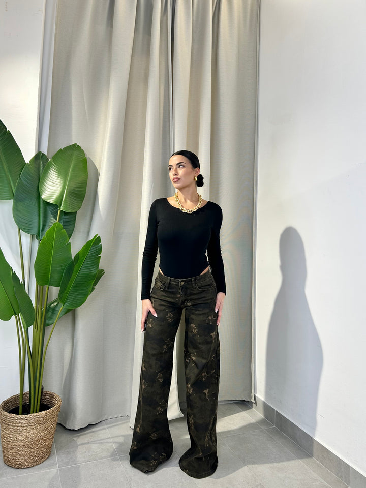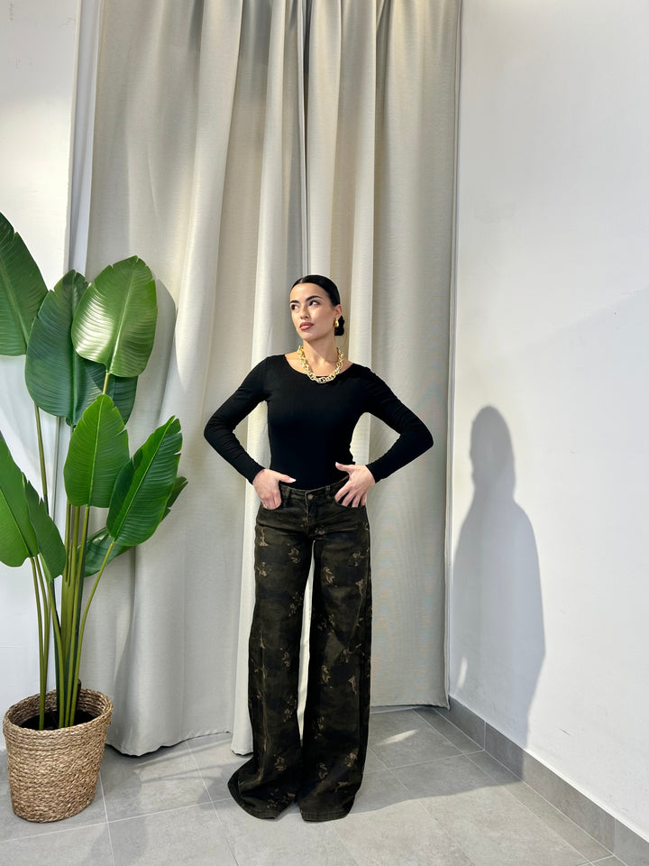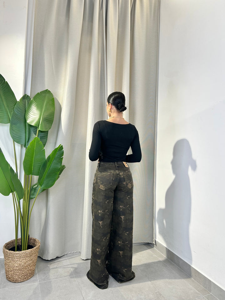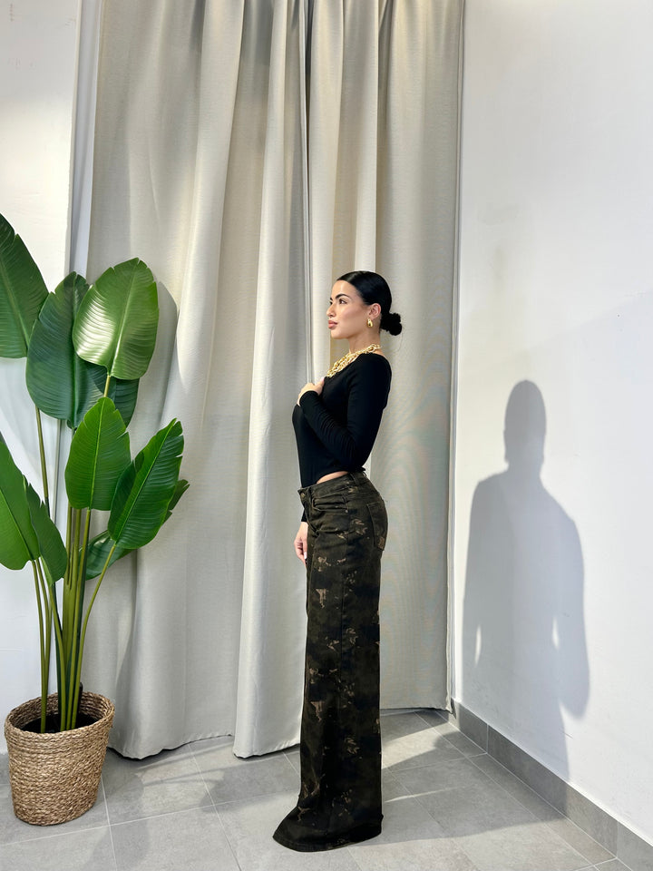 -Jeans Mod.Palazzo fantasia mimetica in tela elasticizzata vita bassa;
