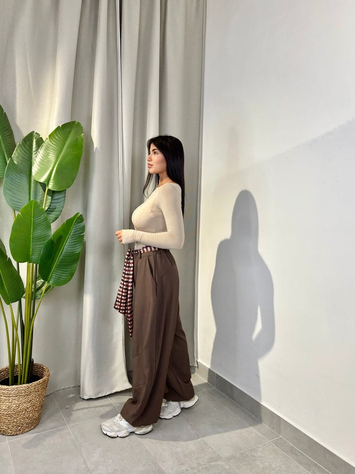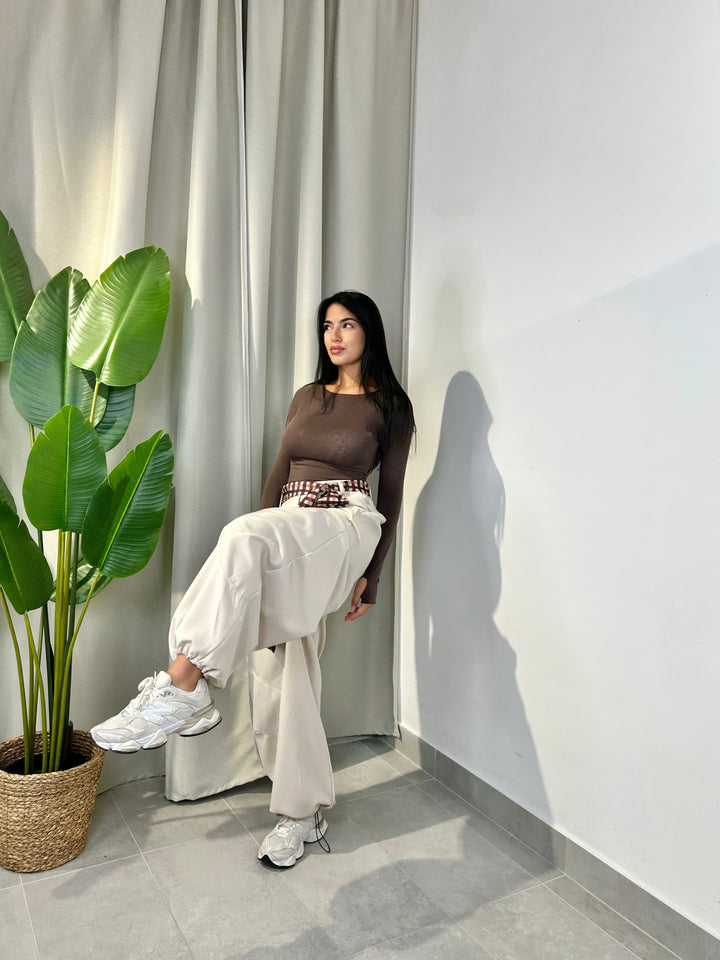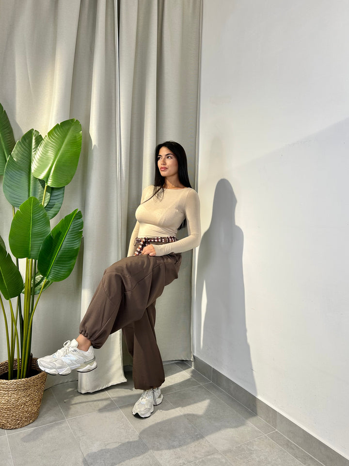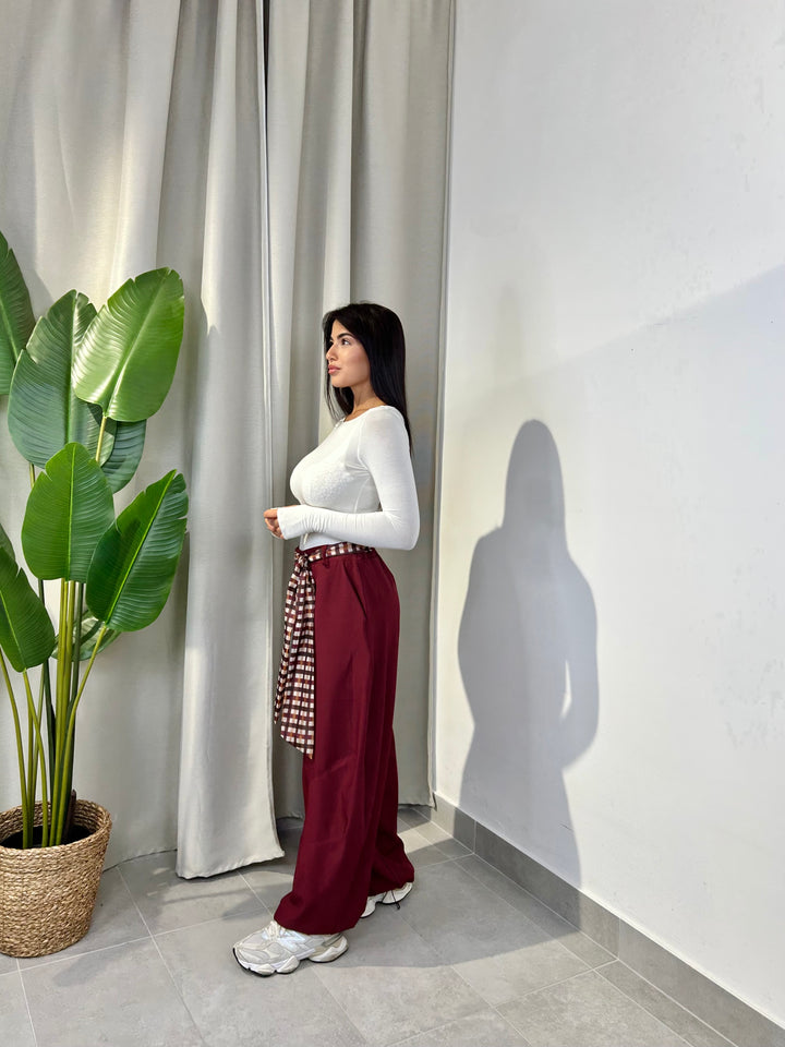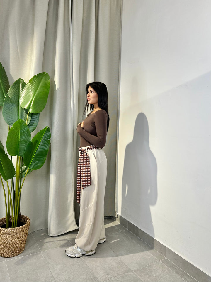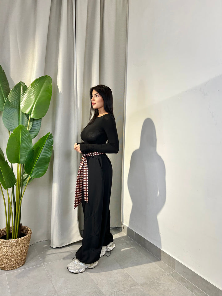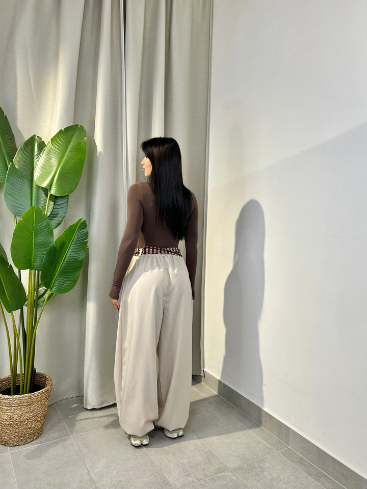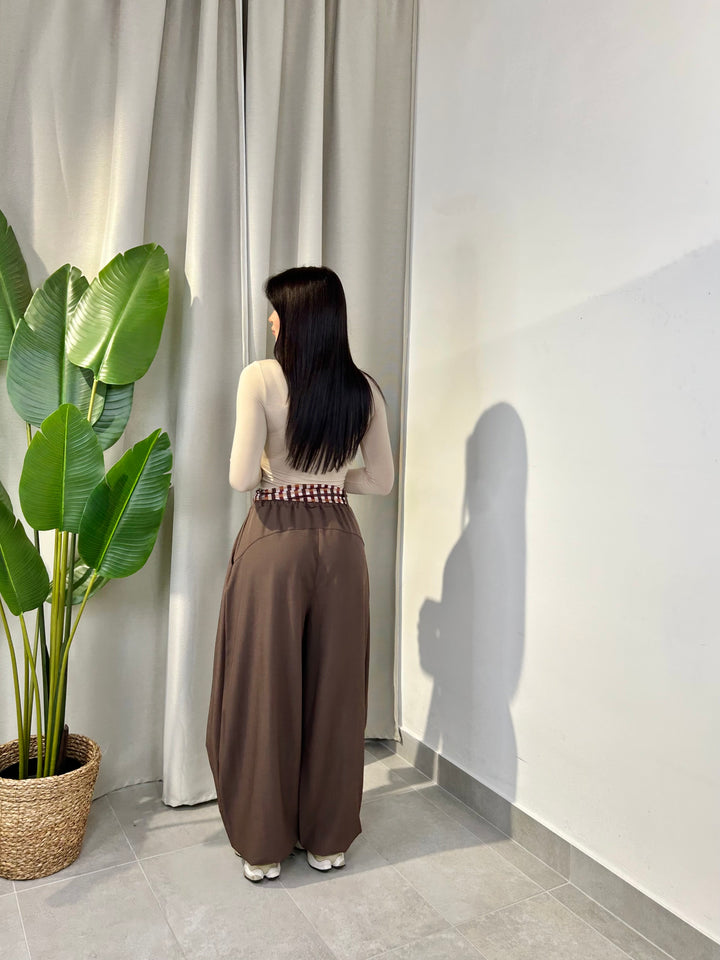 -Pantalone modello ballon con coulisse sul fondo regolabile e compreso di foulard a fantasia;