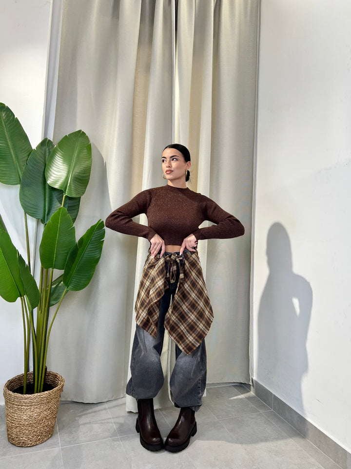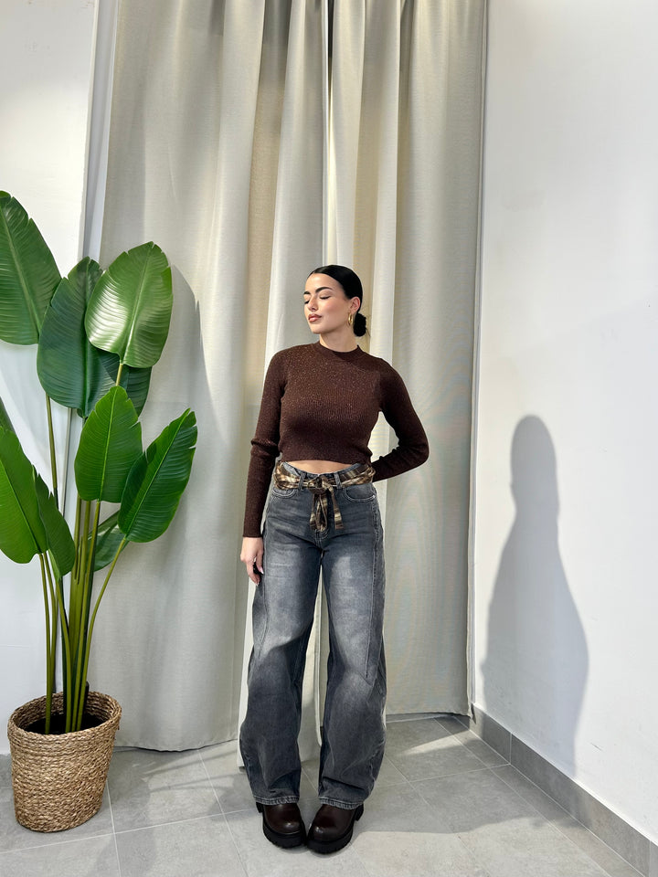 -Jeans Mod.Wide Ballon in tela elasticizzata compreso di foulard in vita;
