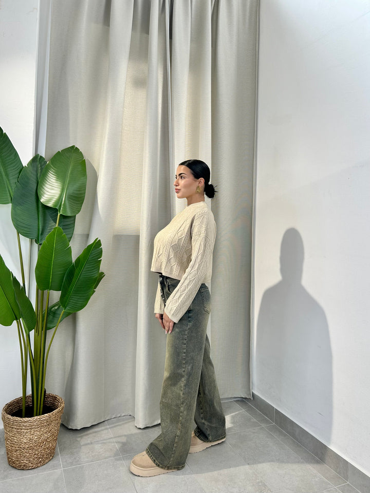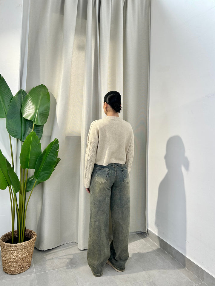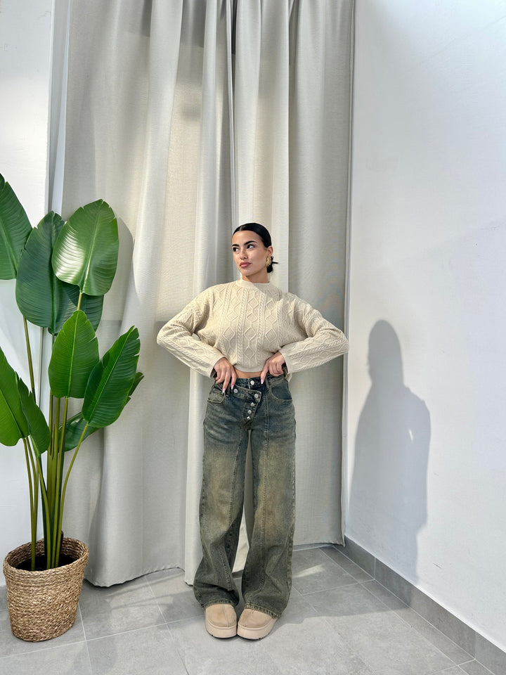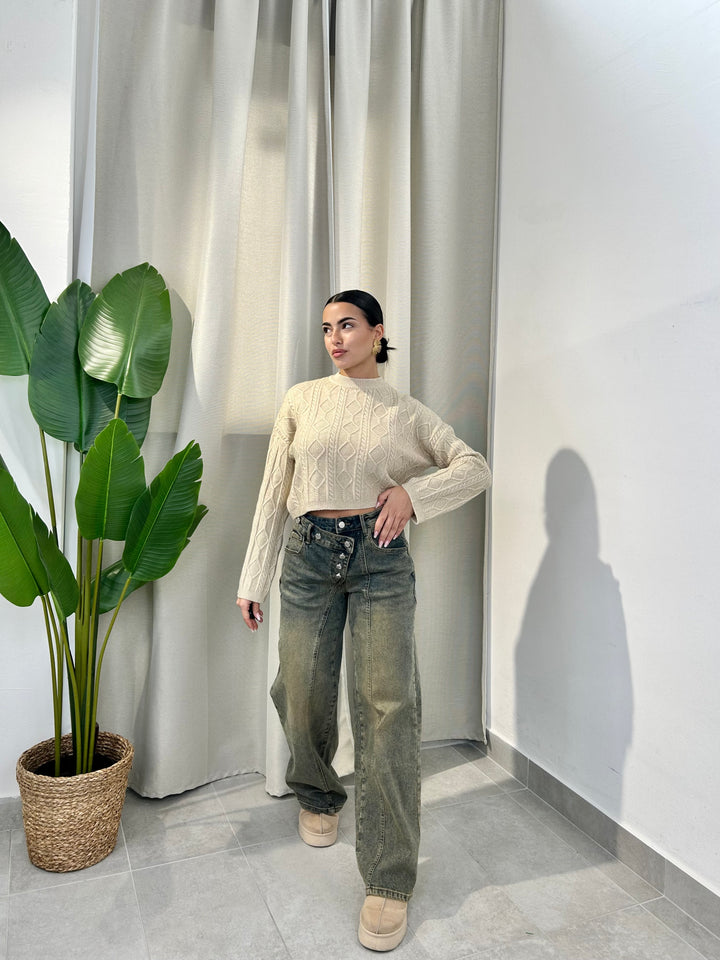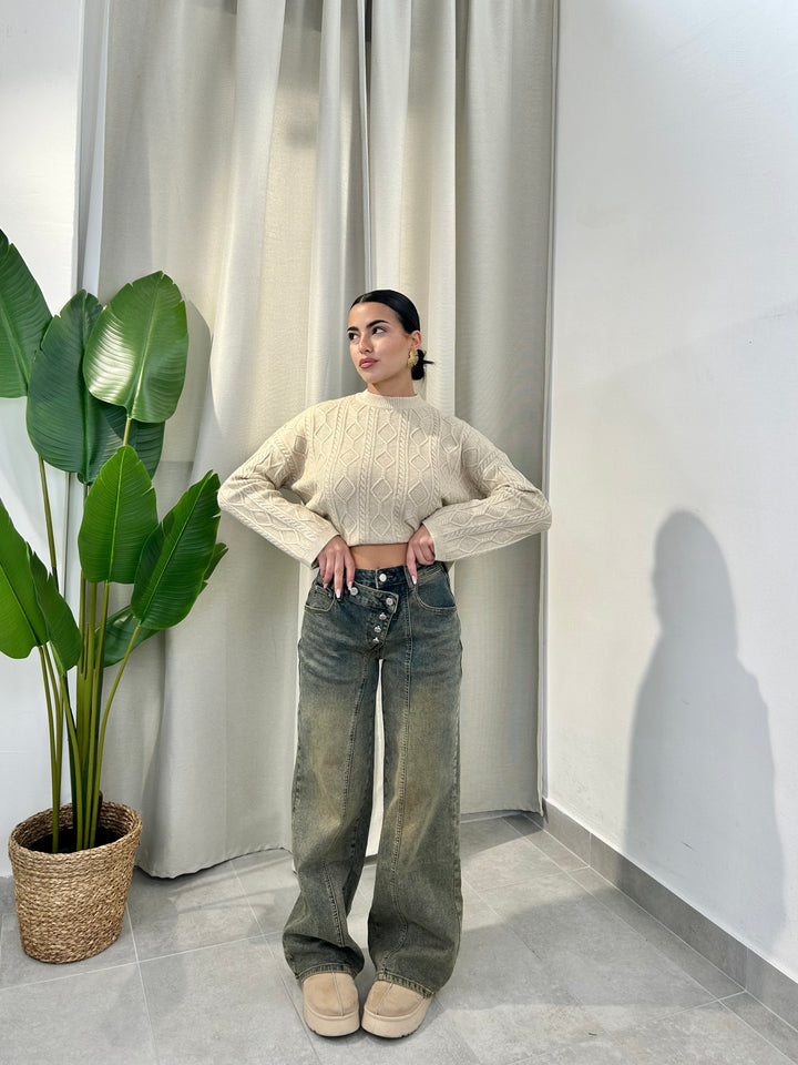 -Jeans sabbiato Mod.Palazzo con abbottonatura trasversale;Tela elasticizzata;