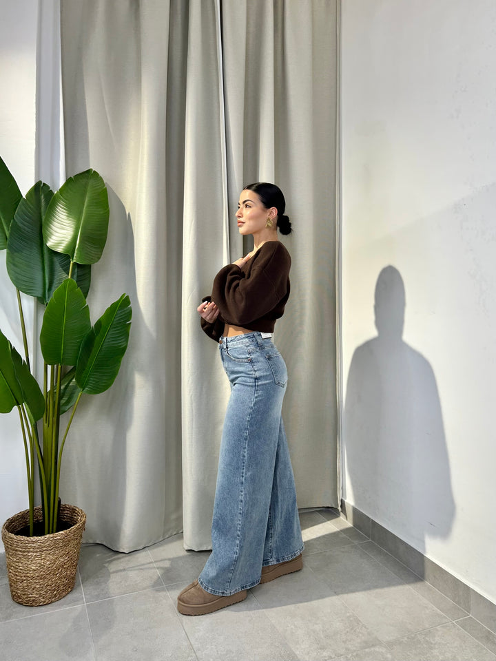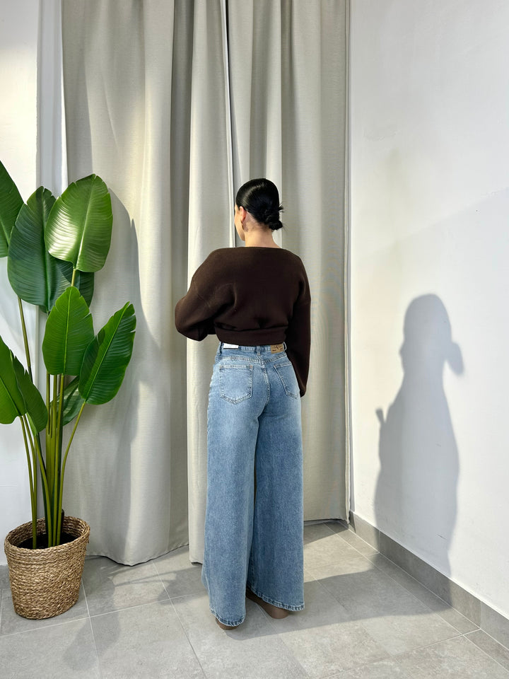 -Jeans Mod.Palazzo vita alta in tela ferma;
